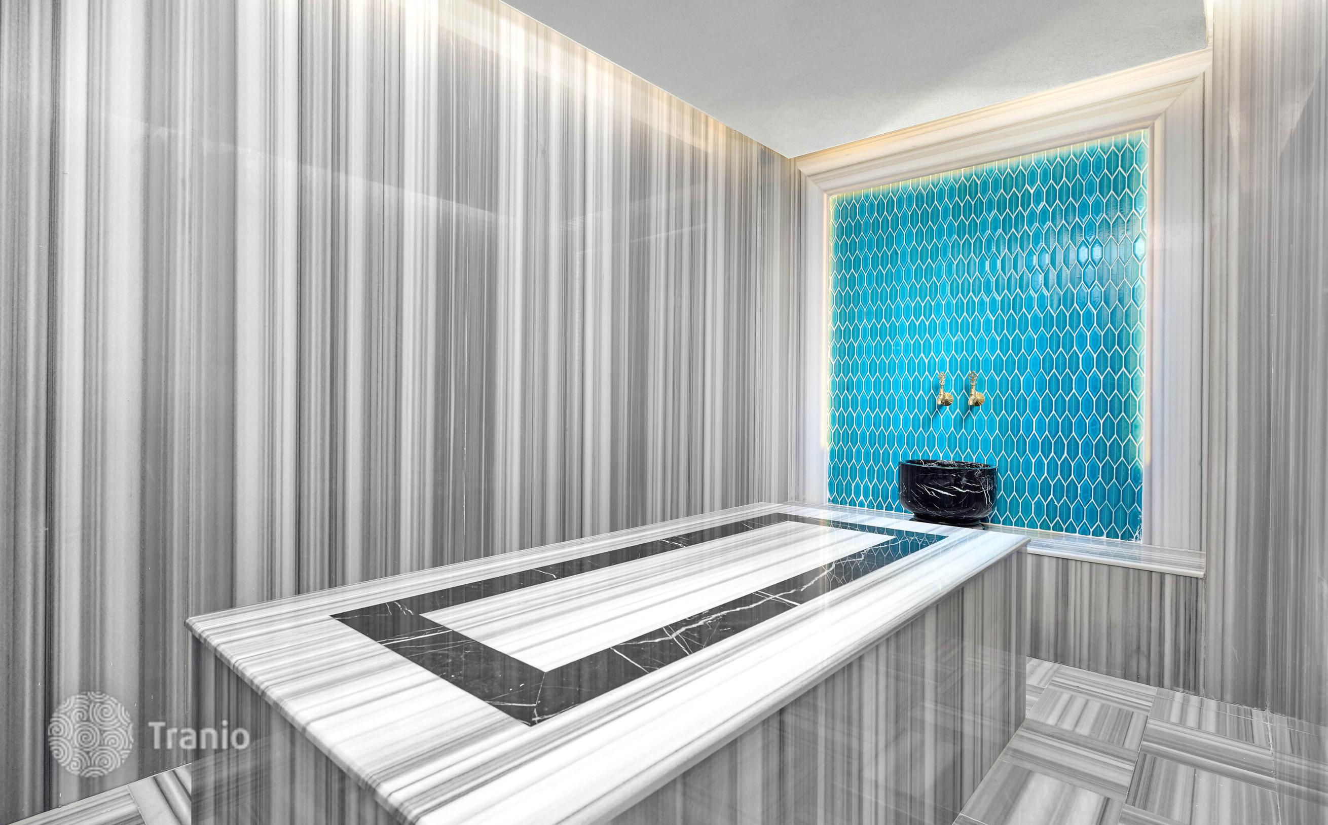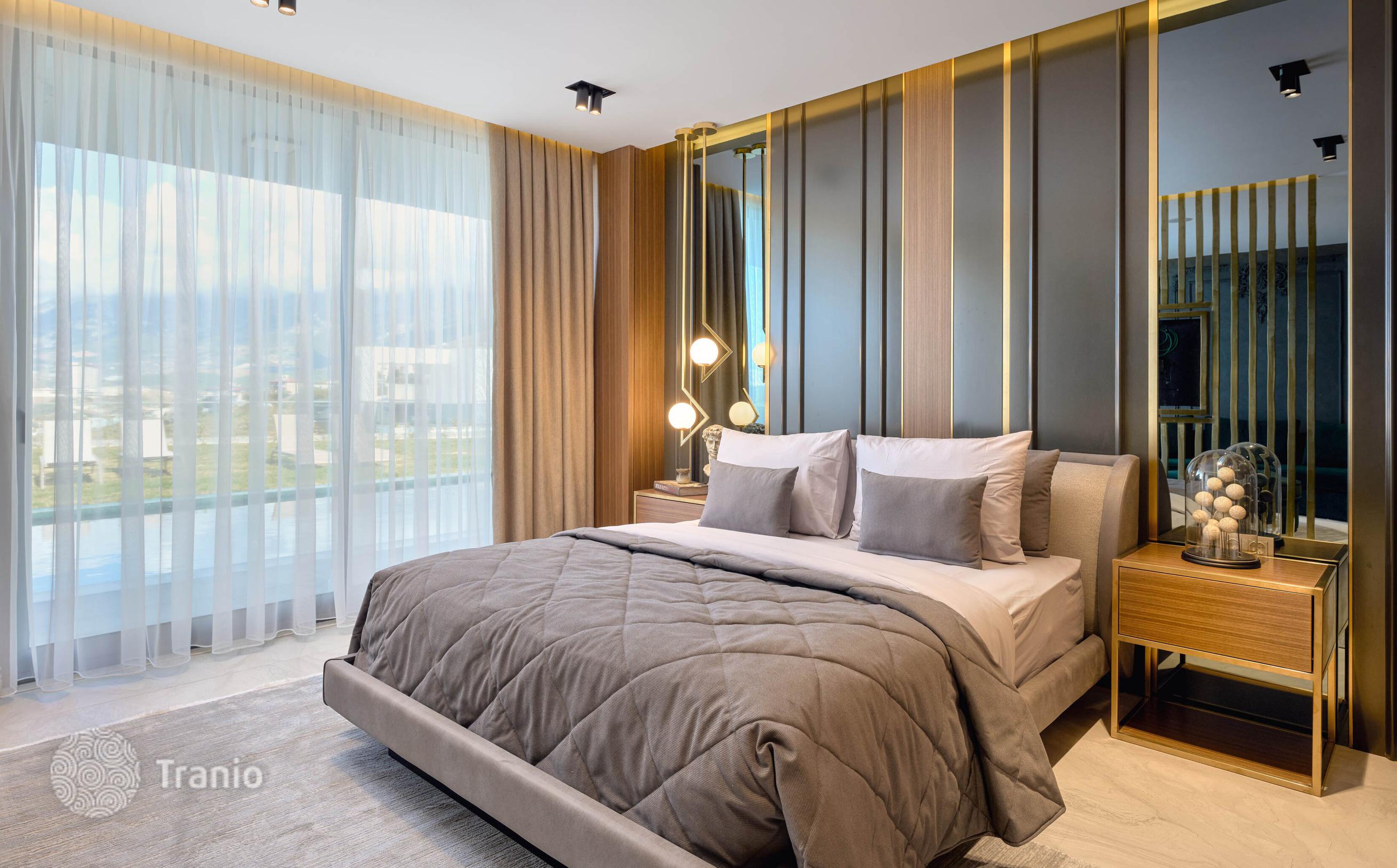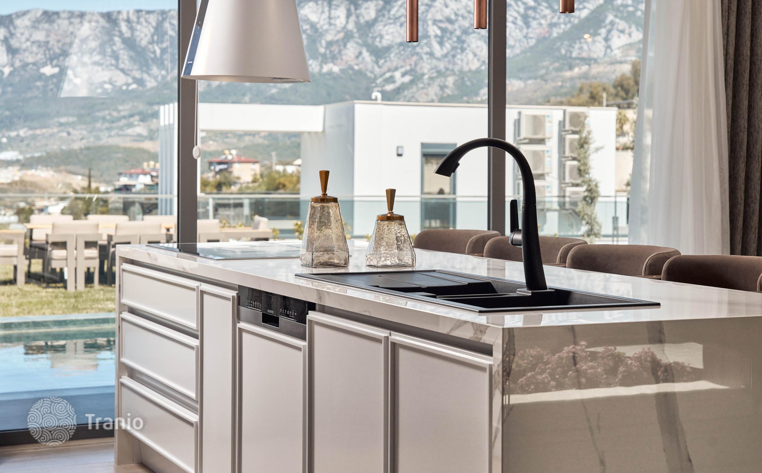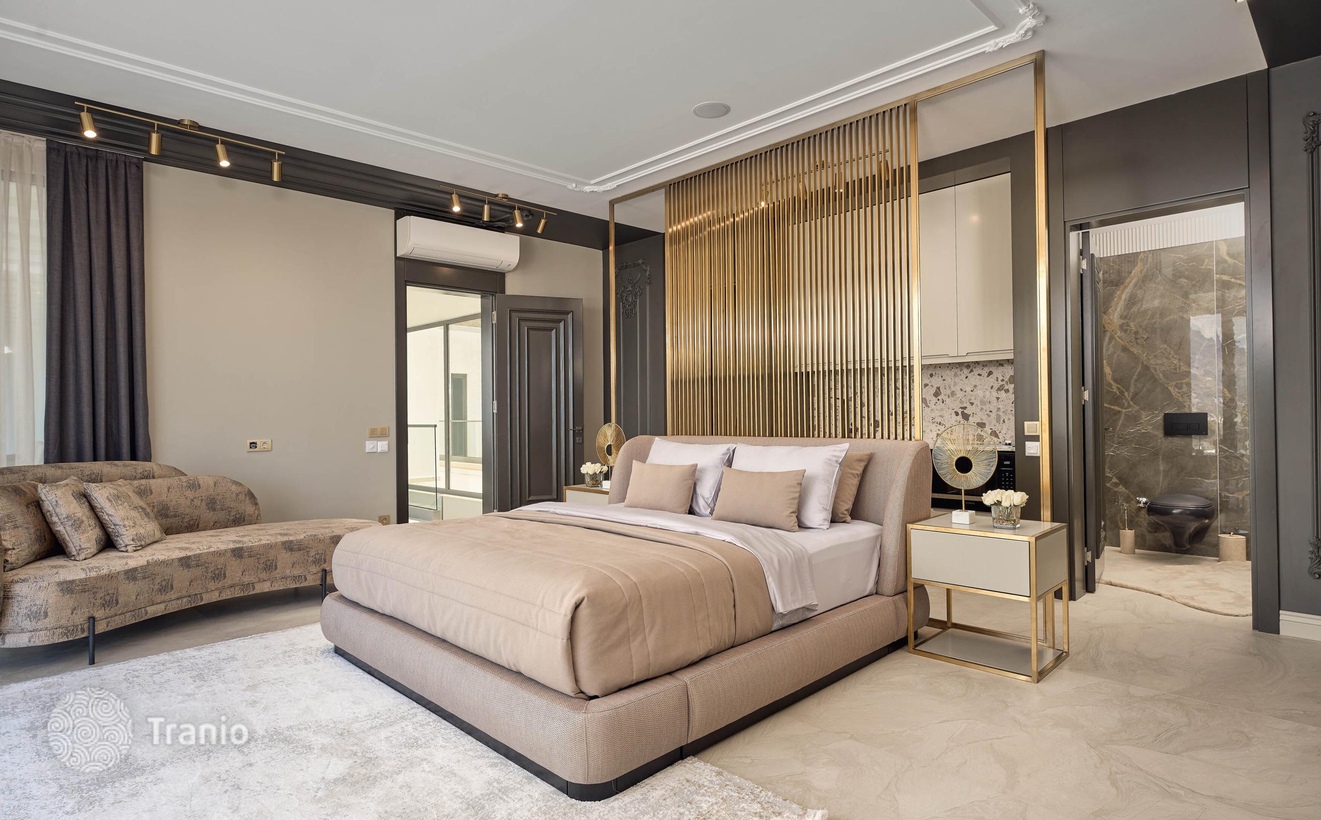 Новый комплекс роскошных вилл с видом на море в Каргыджаке-Алания. Система «умный дом». Частный гараж, сад, бассейн и сауна Построен на участке площадью 4323 м² и состоит из 4 роскошных вилл. Просторные, светлые и комфортабельные виллы оборудованы собственным лифтом, бассейном, садом, гаражом, сауной, подсобными помещениями, спортивным залом и комнатой для хобби. 3х-этажные виллы планировки 4 + 1 площадью 400 м² построены с полным учетом шумо-и влагоизоляции. При строительстве использовались только экологически чистые и высококачественные материалы. Комплекс расположен в идеальном месте, вдали от шума и суеты города, в окружении гор и сосновых лесов. С каждой виллы открывается незабываемый вид на Средиземное море, горы и крепость Алании. На продажу осталась всего одна вилла. Вилла А построена на участке площадью 983 м², общая площадь самой виллы составляет 400 м² Cобственный крытый гараж, бассейн и сад в пределах своего участка. Подвал площадью 216 м²: гараж, тренажерный зал, сауна, массажный кабинет, кладовая, туалет и душ. Первый этаж: 2 спальни (одна с гардеробной и ванной комнатой), ванная комната, просторная гостиная, совмещенная с кухней и кладовой. Второй этаж: 2 спальни, каждая с ванной комнатой и просторная терраса.