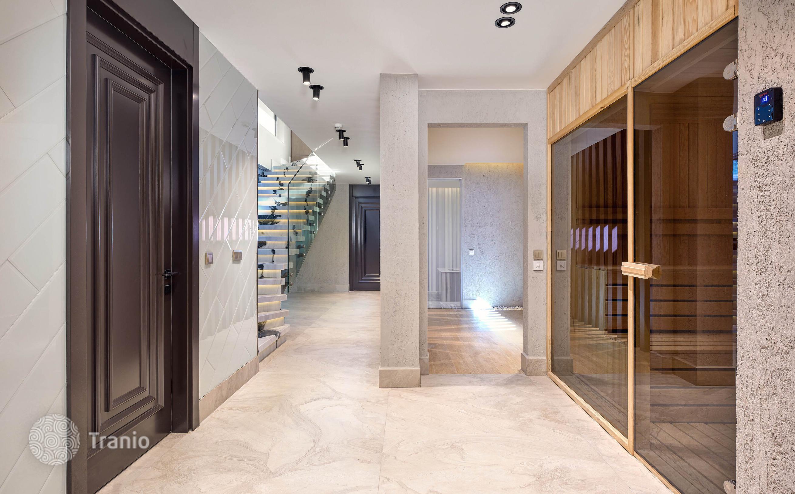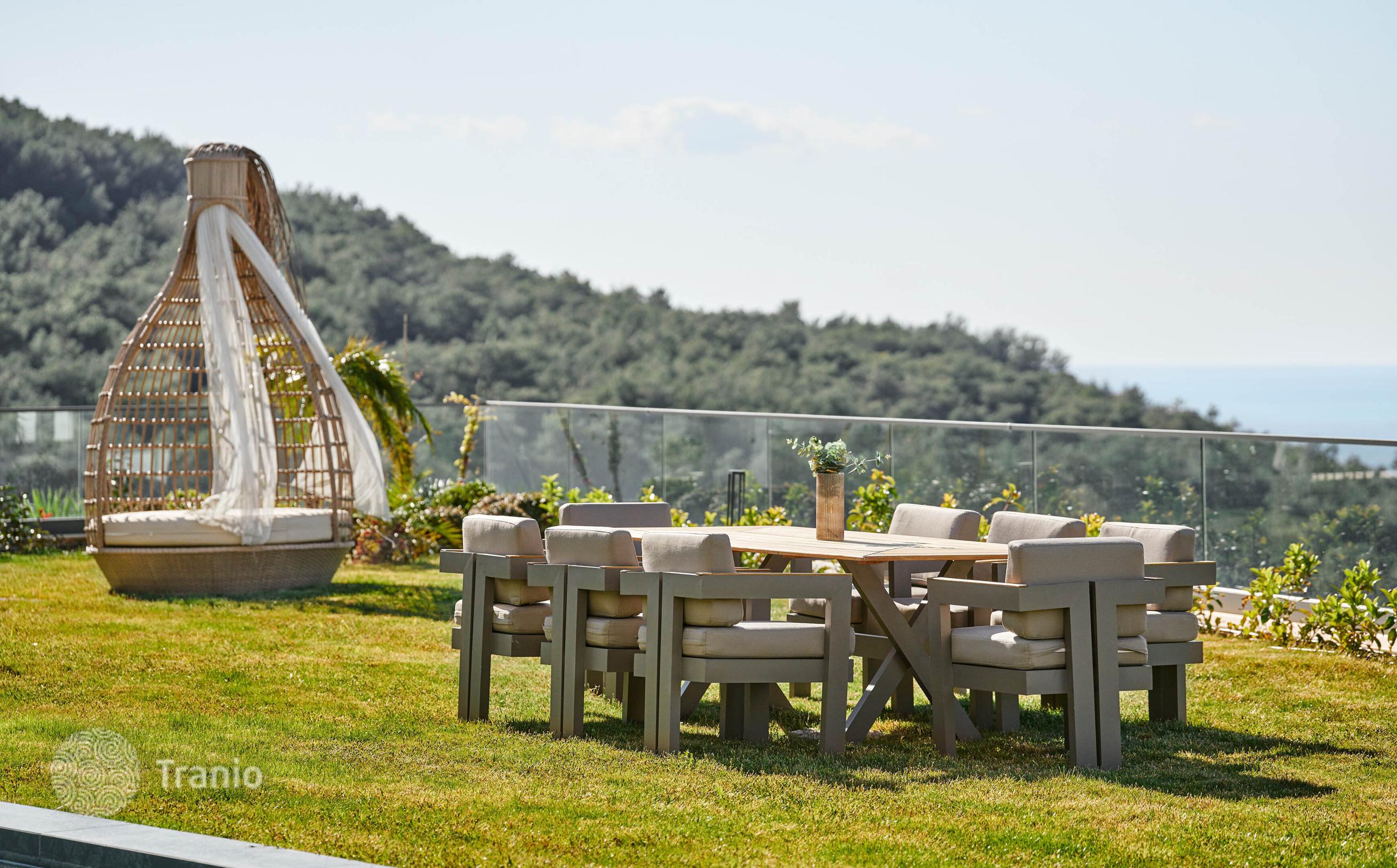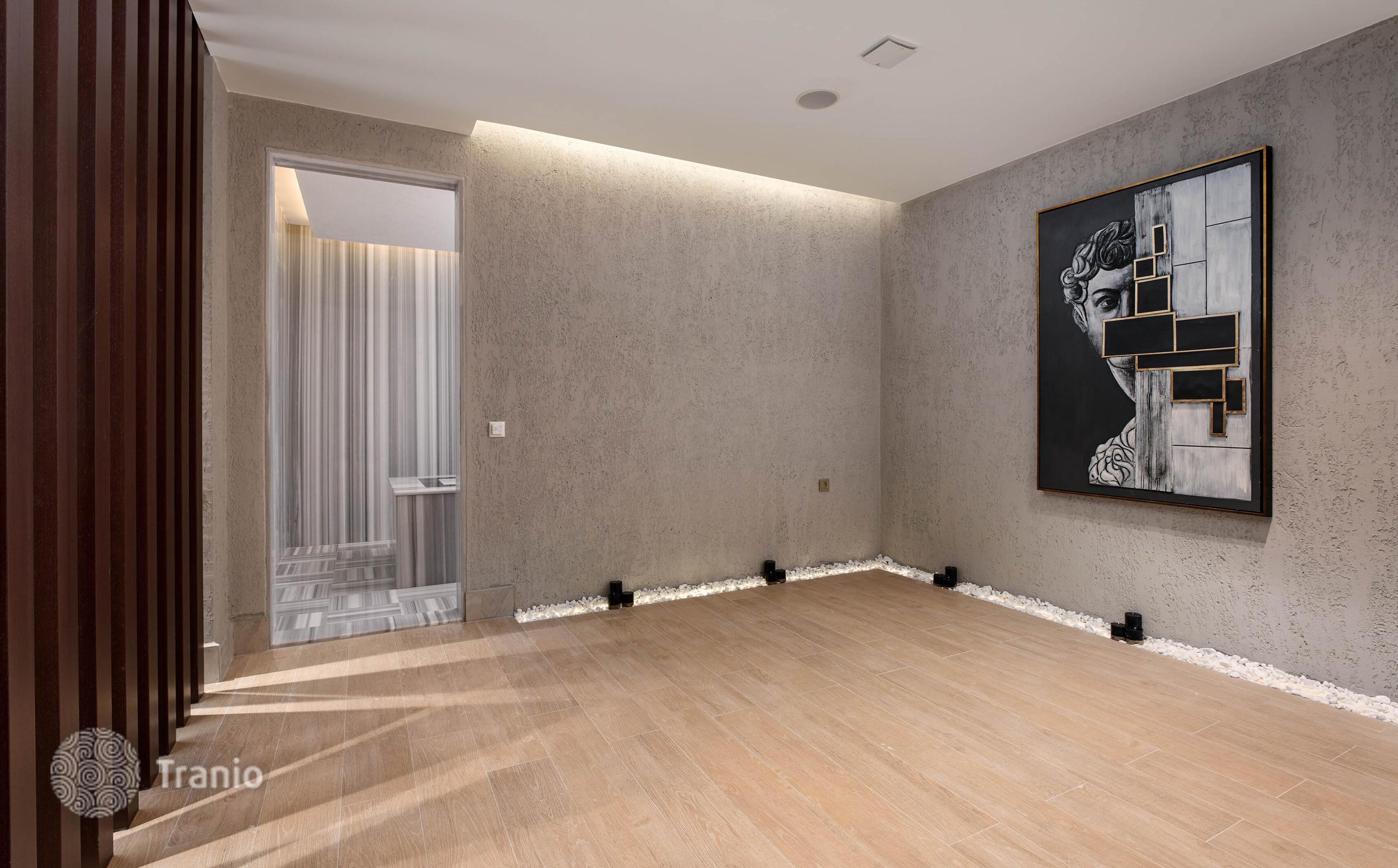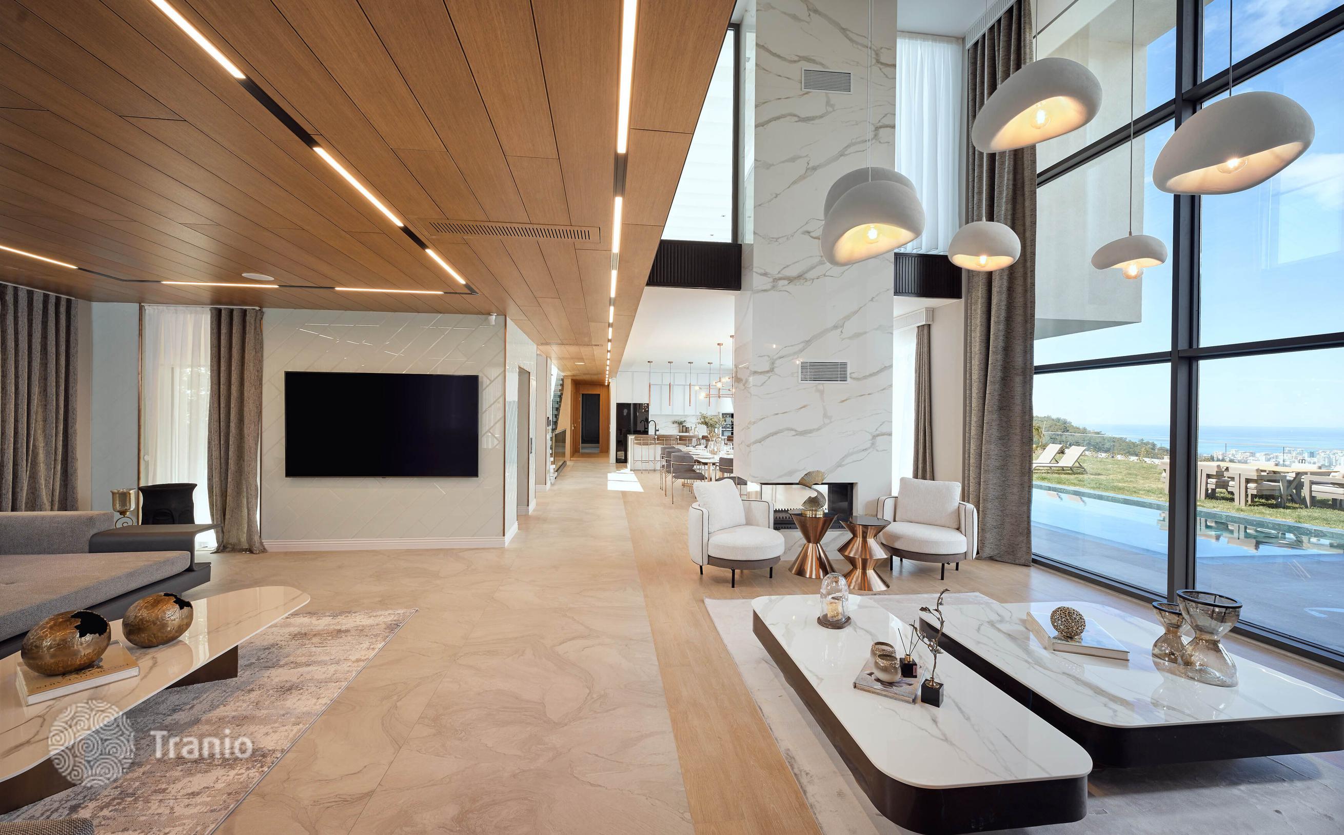 Инфраструктура виллы: Вилла А с бассейном площадью -75 м² Сауна, Бассейны с хромированной лестницей, Зона отдыха рядом с бассейном, Солнечная терраса с нескользящей керамической плиткой. Спортивный зал, Комната для хобби, Автостоянка или гараж, Сад с тропическими и цитрусовыми деревьями (пальмы, апельсины, лимоны), Камеры видеонаблюдения, Зарядное устройство для электромобилей, Электрический аварийный генератор для всего комплекса. Комплекс сдан в марте 2023 года.