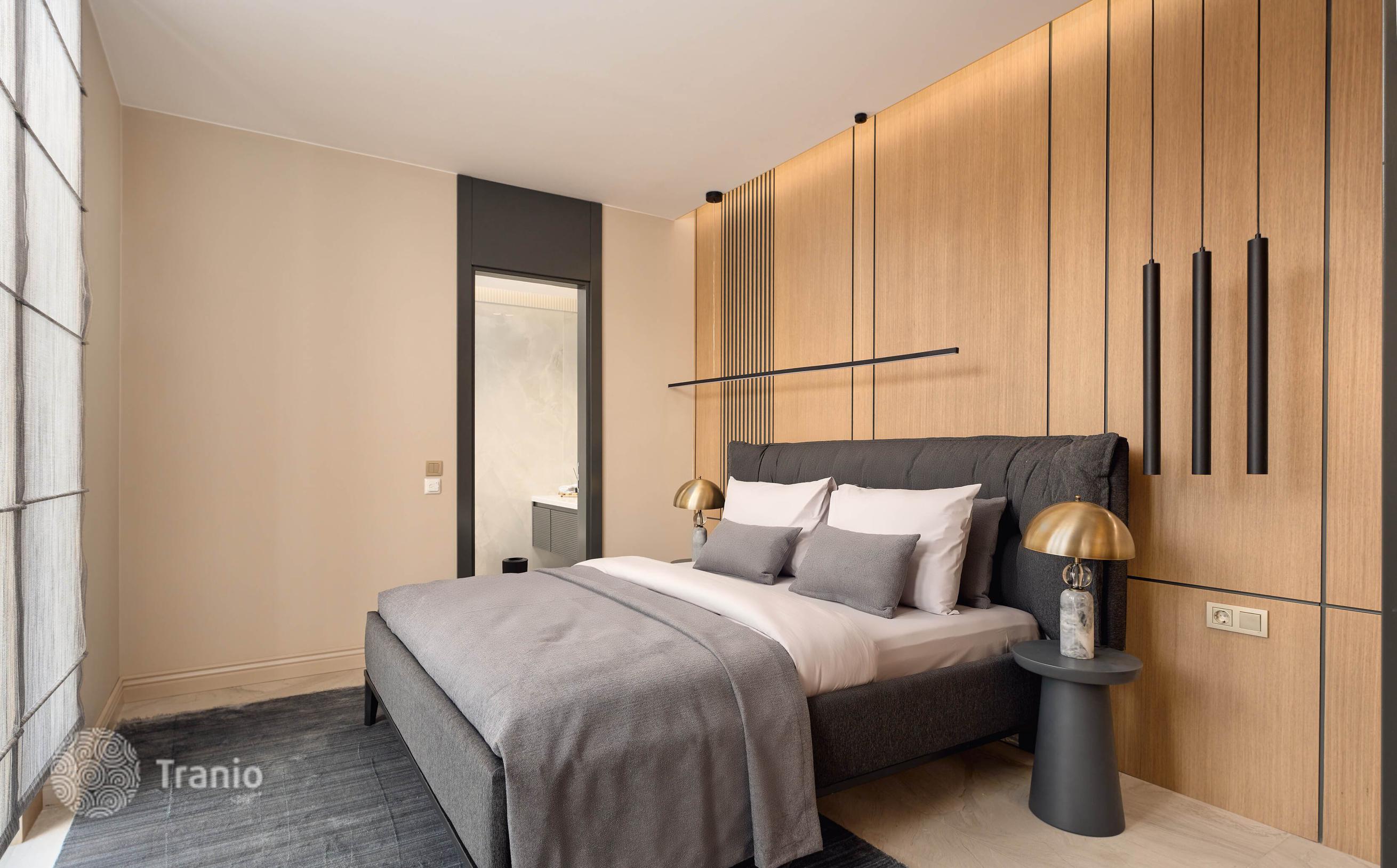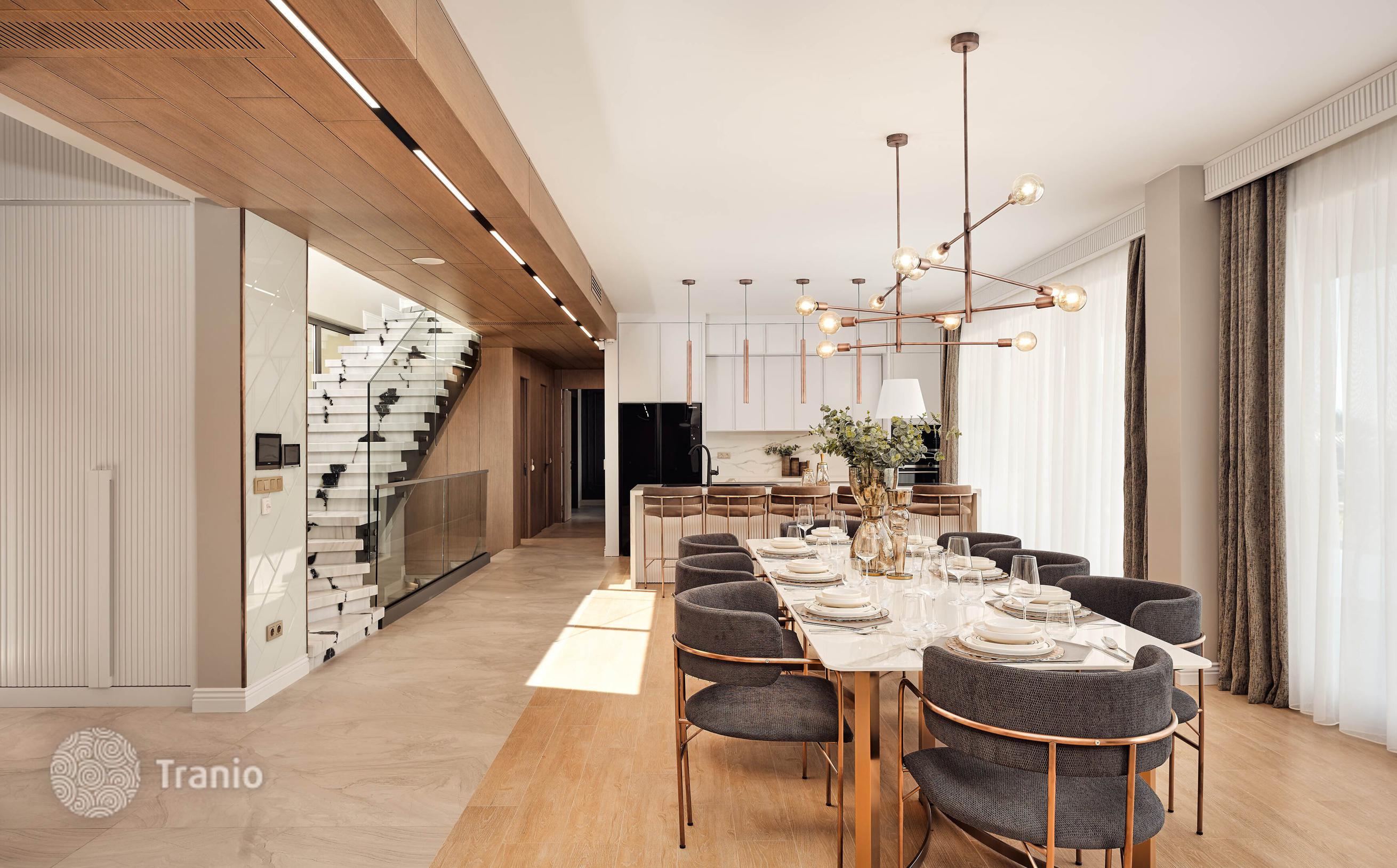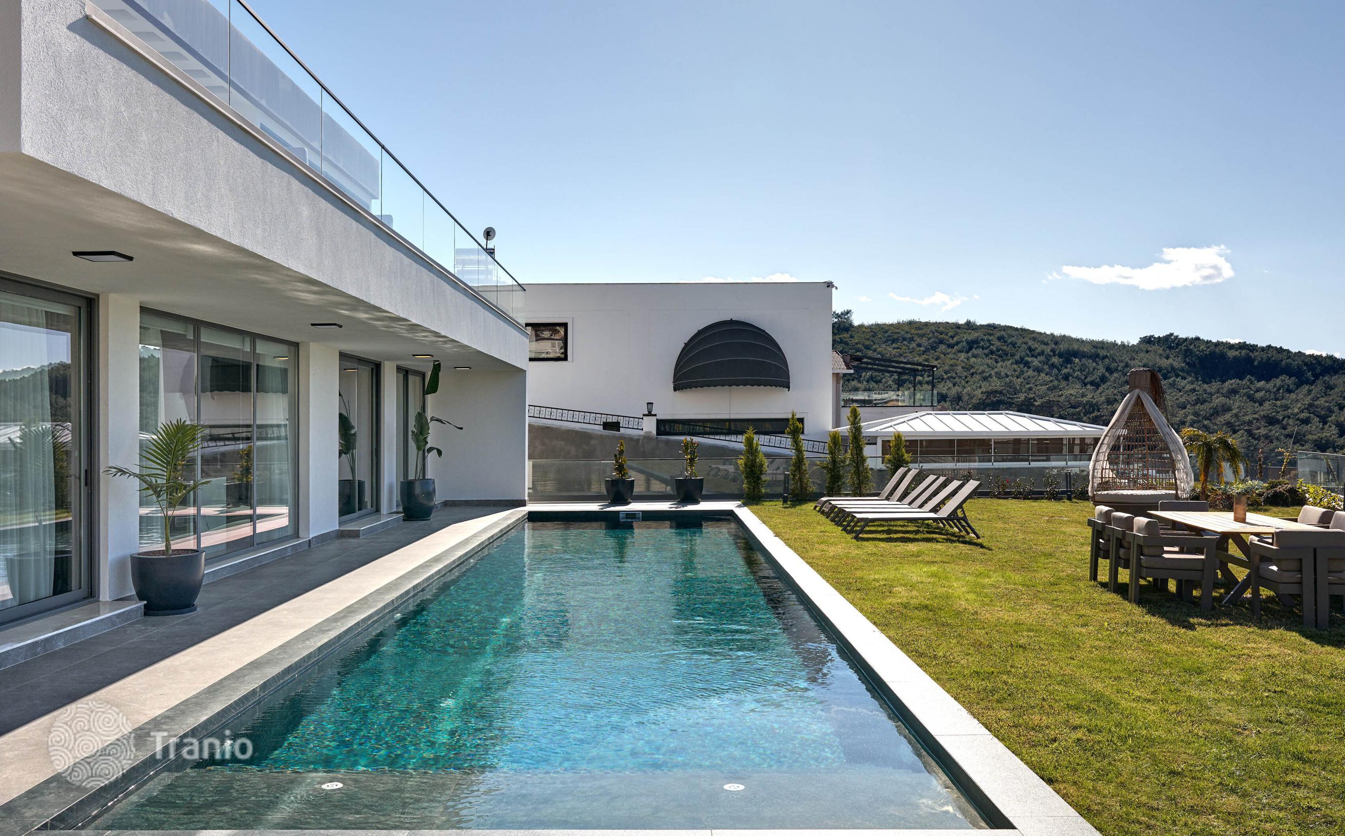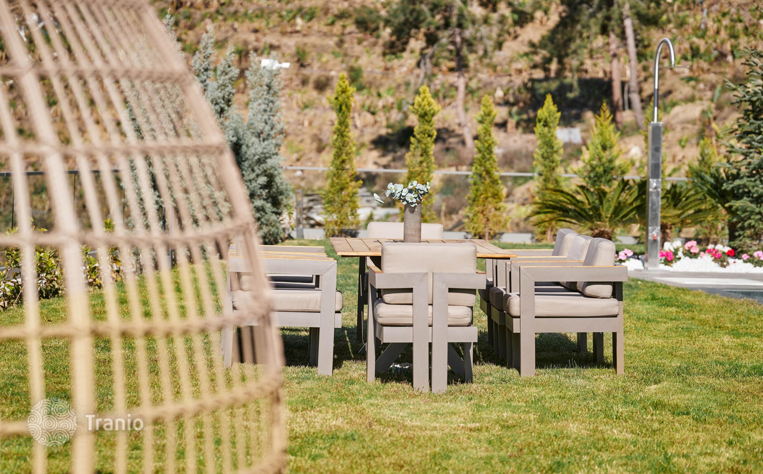 Инфраструктура виллы: Вилла А с бассейном площадью -75 м² Сауна, Бассейны с хромированной лестницей, Зона отдыха рядом с бассейном, Солнечная терраса с нескользящей керамической плиткой. Спортивный зал, Комната для хобби, Автостоянка или гараж, Сад с тропическими и цитрусовыми деревьями (пальмы, апельсины, лимоны), Камеры видеонаблюдения, Зарядное устройство для электромобилей, Электрический аварийный генератор для всего комплекса. Комплекс сдан в марте 2023 года.