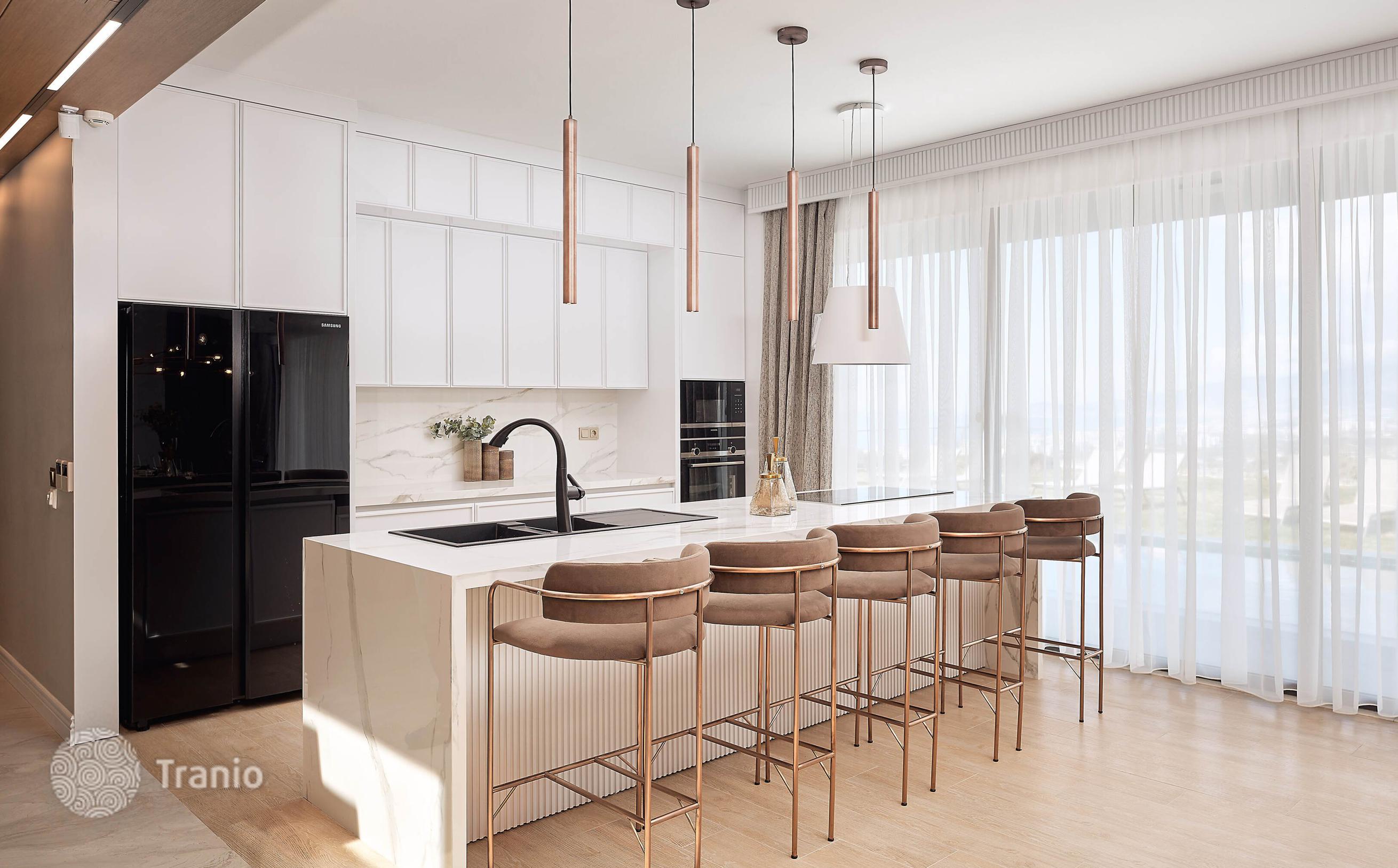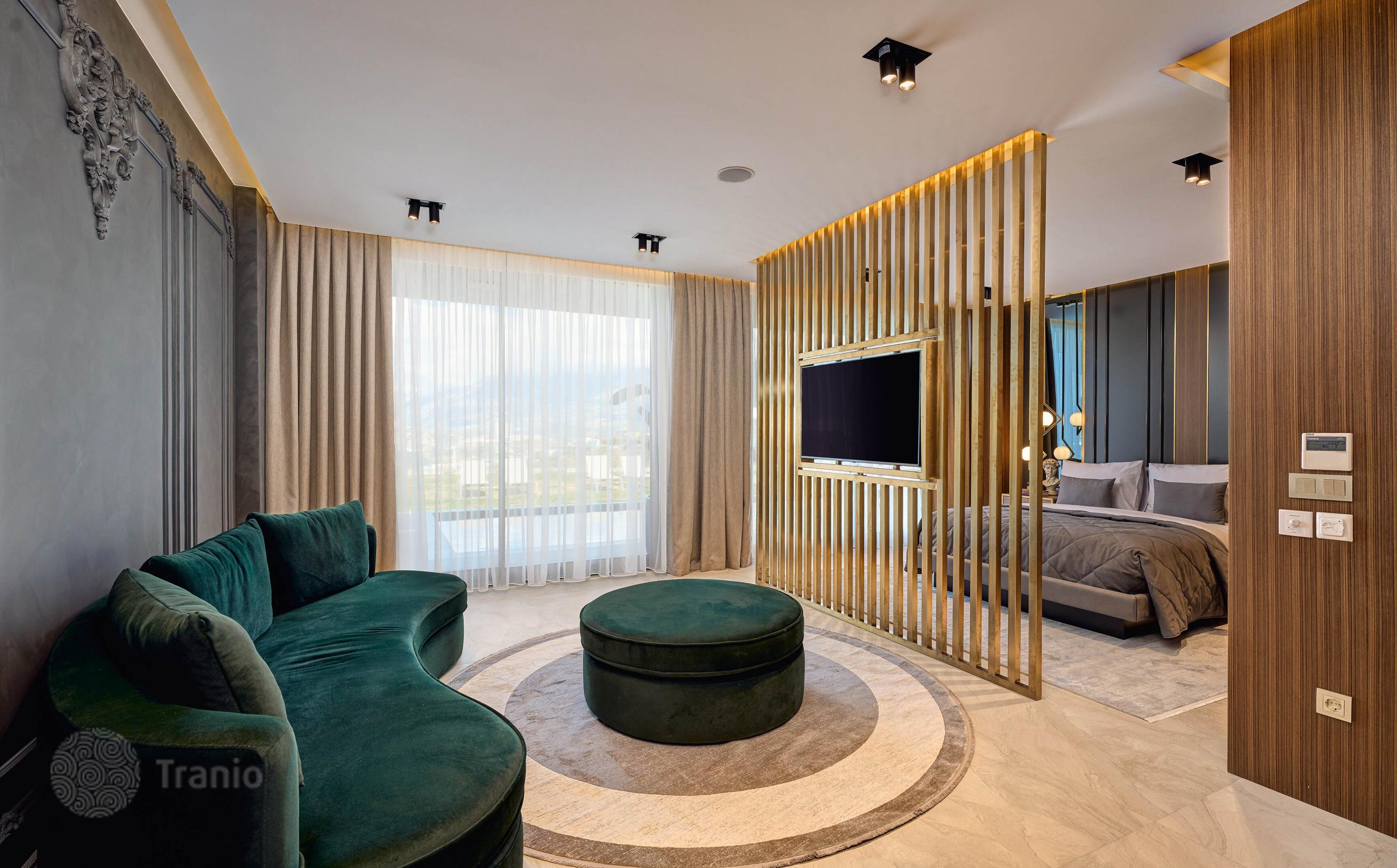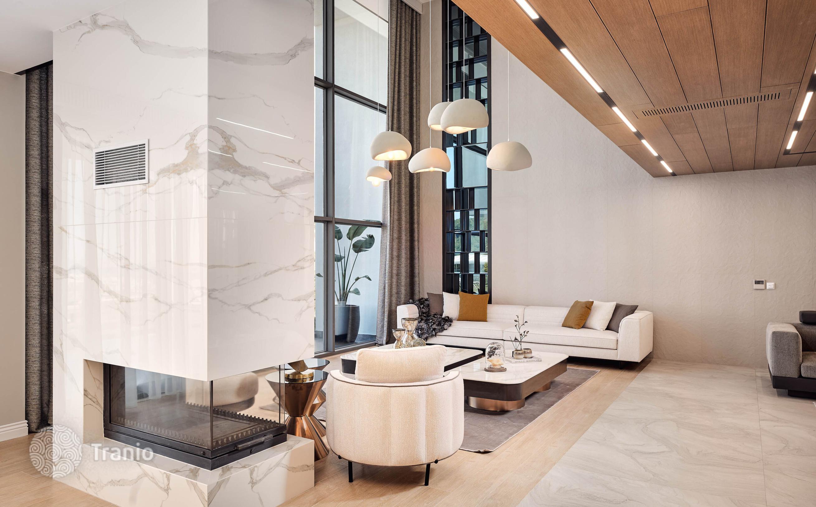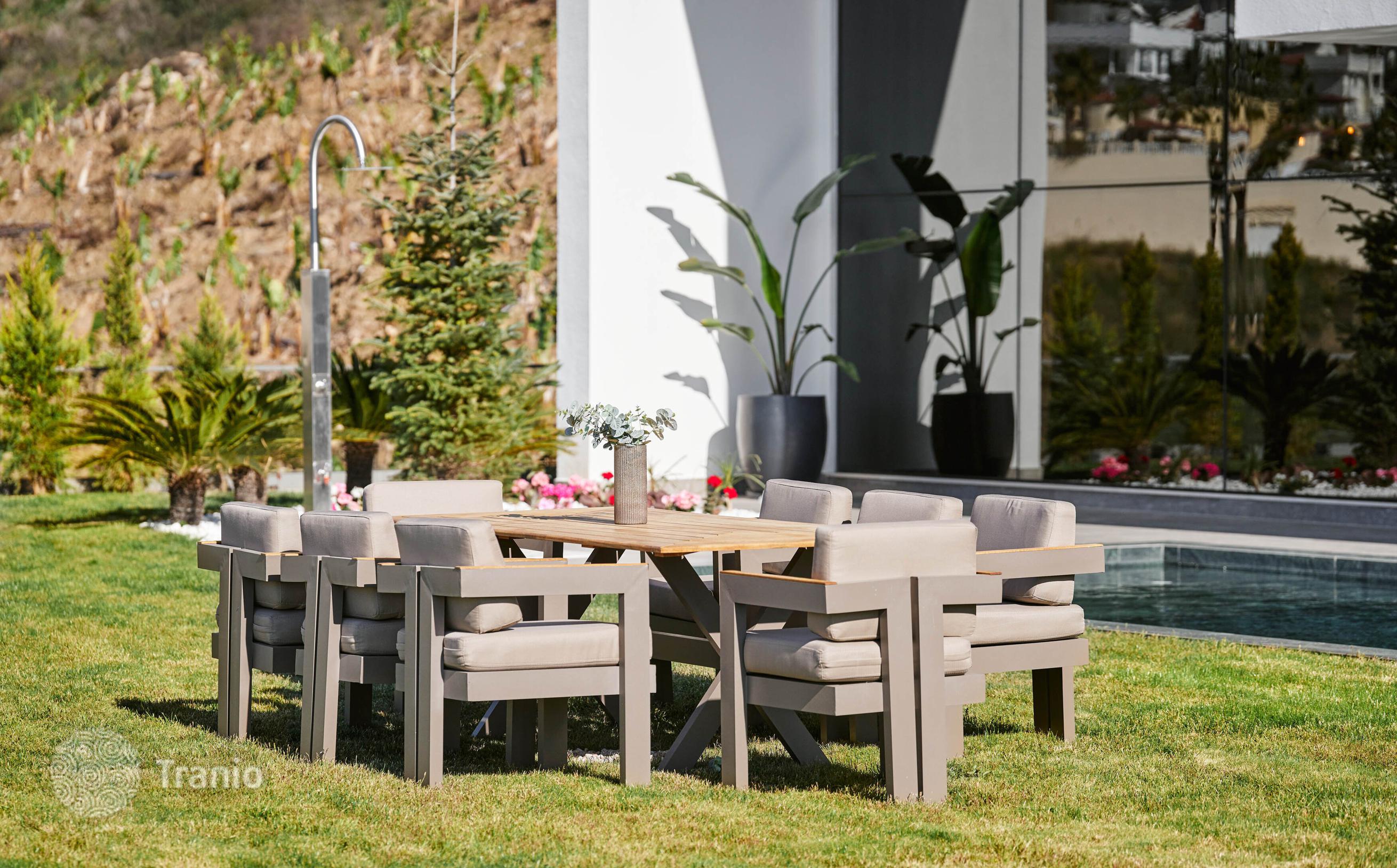Инфраструктура виллы: Вилла А с бассейном площадью -75 м² Сауна, Бассейны с хромированной лестницей, Зона отдыха рядом с бассейном, Солнечная терраса с нескользящей керамической плиткой. Спортивный зал, Комната для хобби, Автостоянка или гараж, Сад с тропическими и цитрусовыми деревьями (пальмы, апельсины, лимоны), Камеры видеонаблюдения, Зарядное устройство для электромобилей, Электрический аварийный генератор для всего комплекса. Комплекс сдан в марте 2023 года.