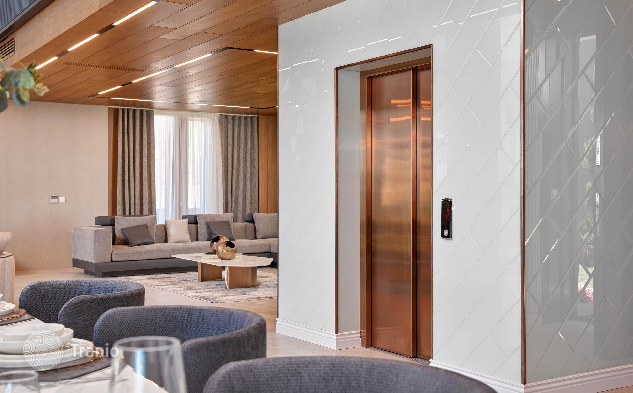 Электричество: Лифт в каждой вилле. Электромонтажные работы выполняются под штукатурку по проекту (стандарт ТГЭ). Необходимое и достаточное количество розеток, телефон, спутниковое телевидение и выключатели. Система «умный дом». Кондиционер с телеуправлением. Телеконтроль включение-выключение электричества. Автоматическая отправка фотографии на ваш телефон при входе в систему. Светодиодные выключатели и розетки Cellia. Достаточная мощность сплит-кондиционера для каждой комнаты с дистанционным управлением (регулируется для охлаждения и обогрева)