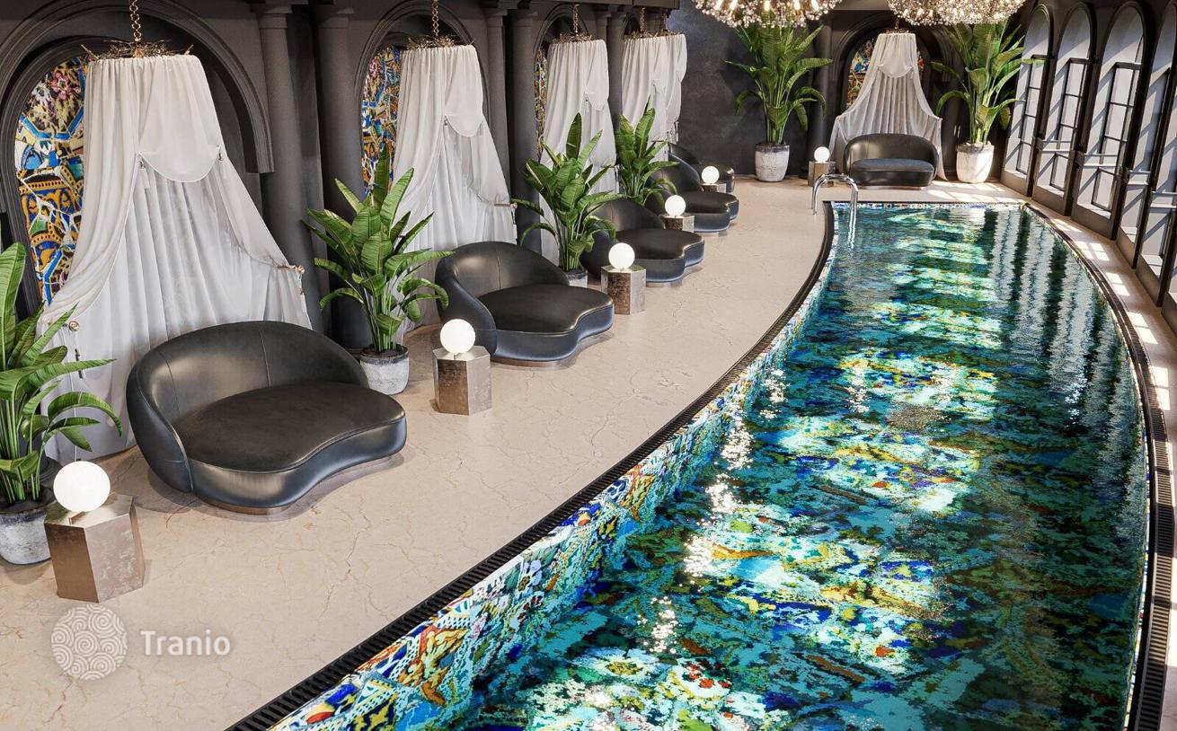В комплексе есть крытый и открытый бассейны, спа-центр, сауна, большие сады, крытые и открытые игровые площадки, а также автостоянки.