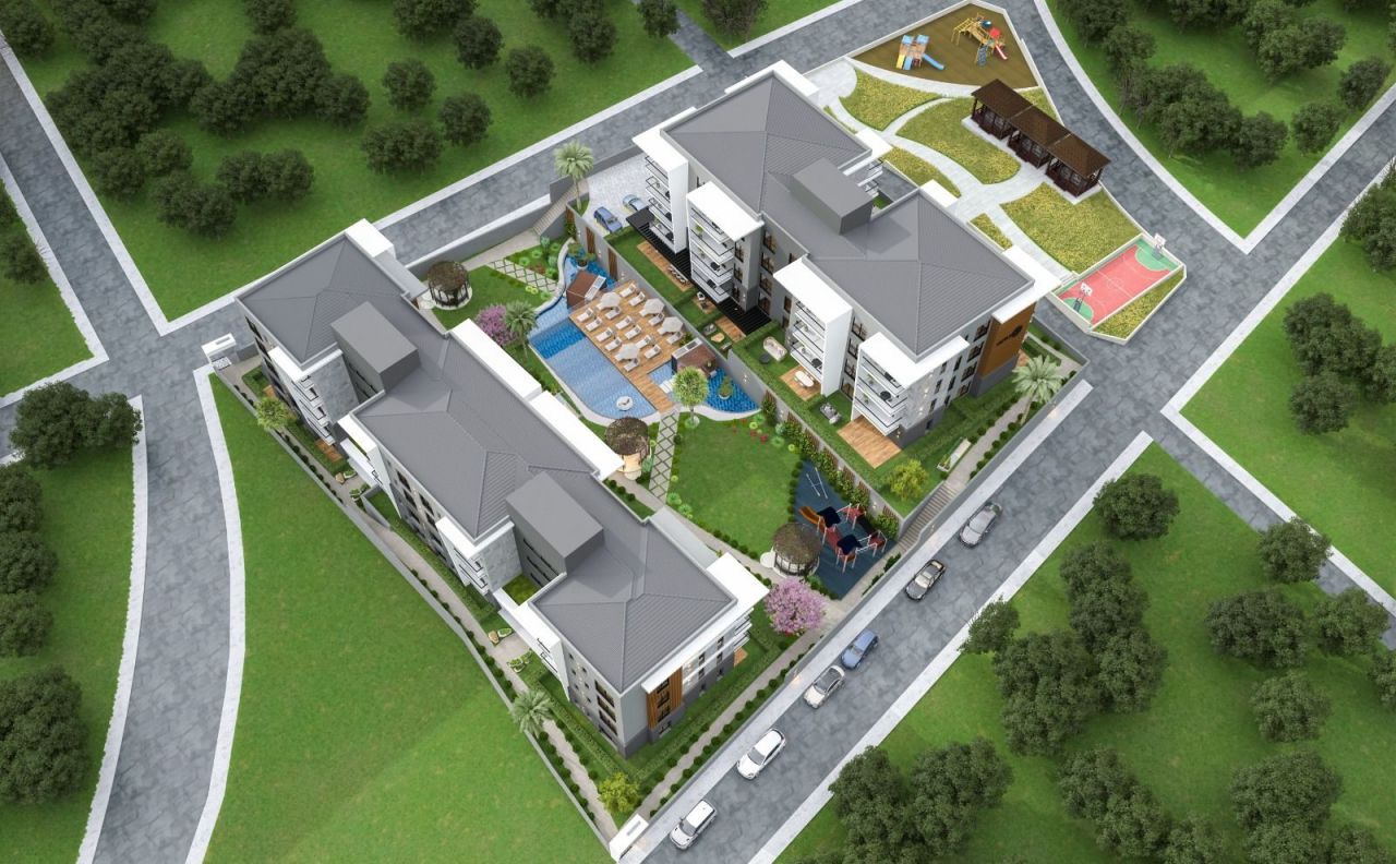 Дом является дуплексом, что означает, что он имеет два этажа. Внутри дома вы найдете все необходимые удобства и удобства для комфортного проживания. Кроме того, в доме есть бассейн, детские площадки, фитнес-центр, лифт, охраняемая парковка и охраняемая территория.