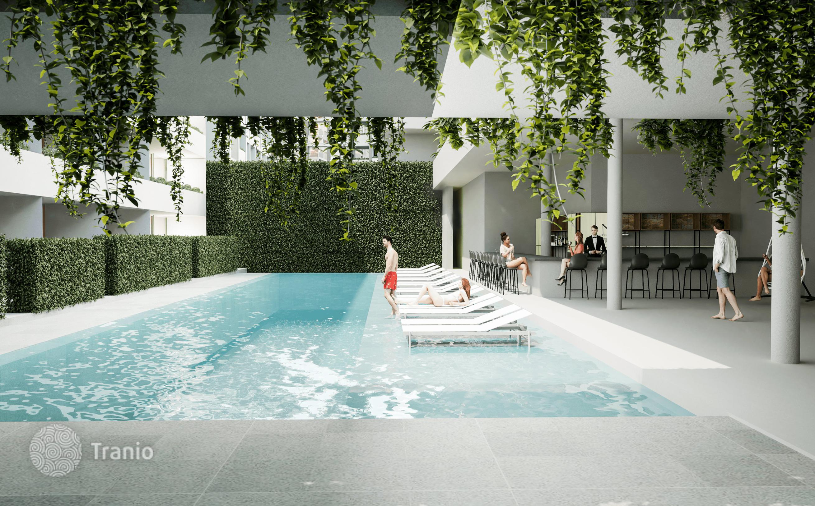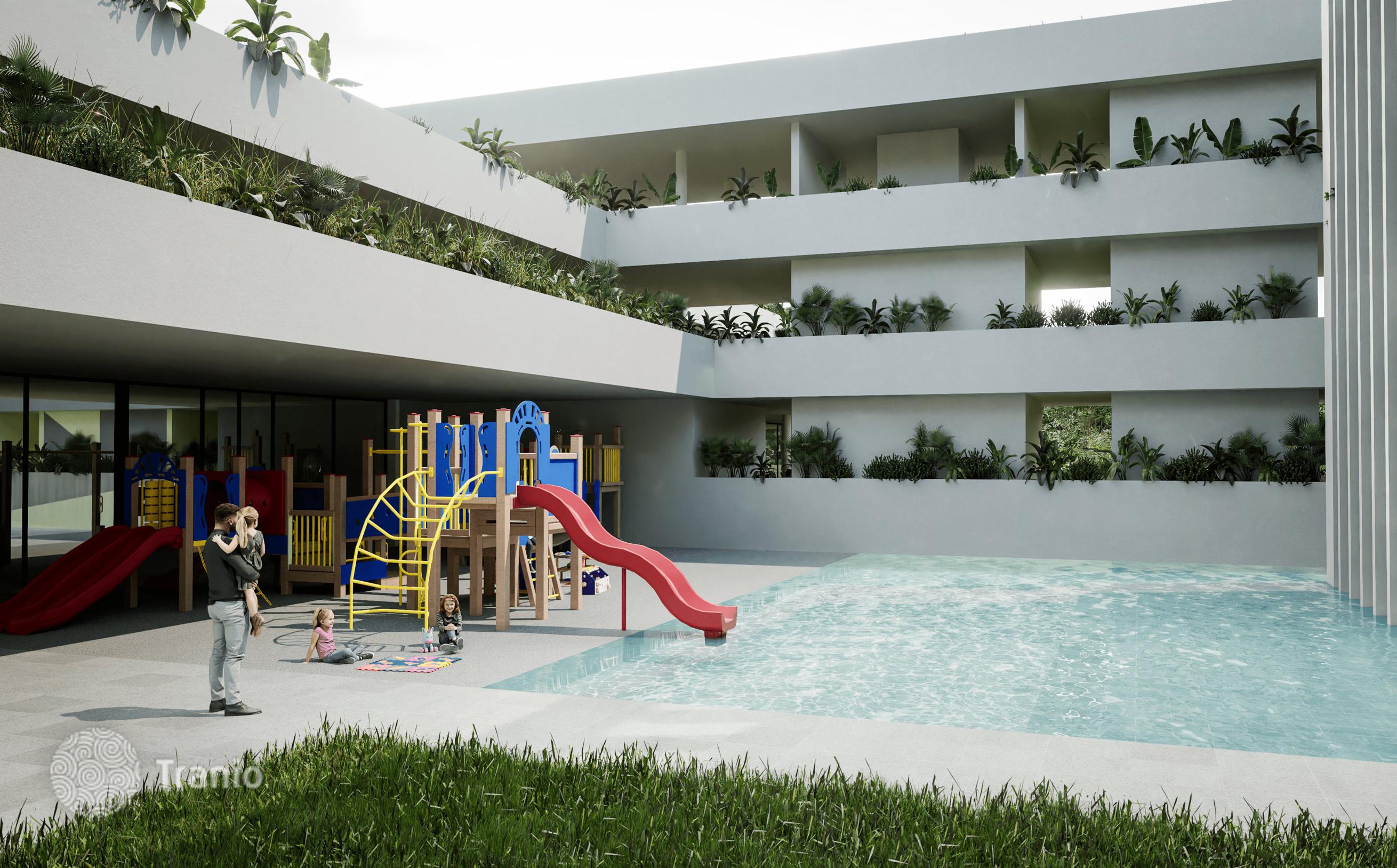Квартиры на первом этаже отличаются уникальными особенностями: у каждой есть своя приватная терраса, где можно наслаждаться спокойствием природы, а также прямой выход к бассейну.