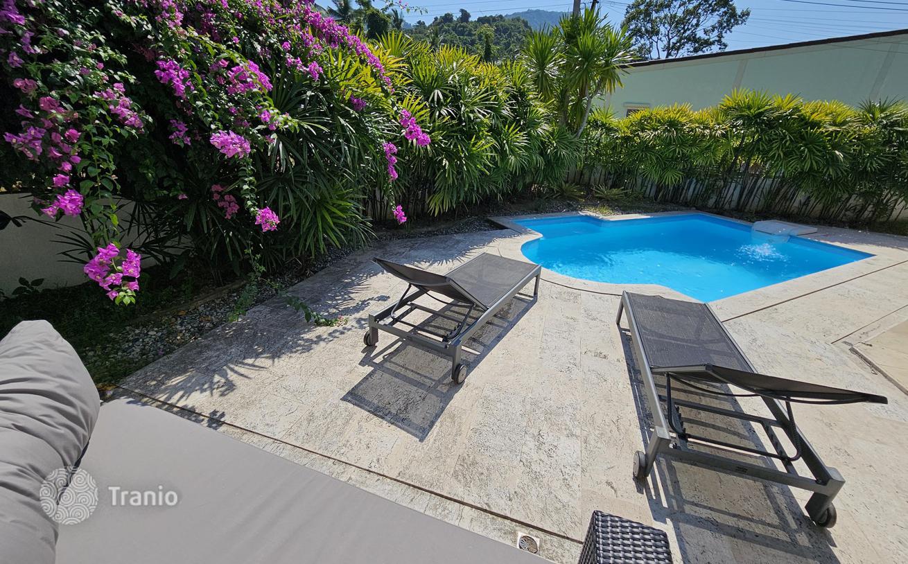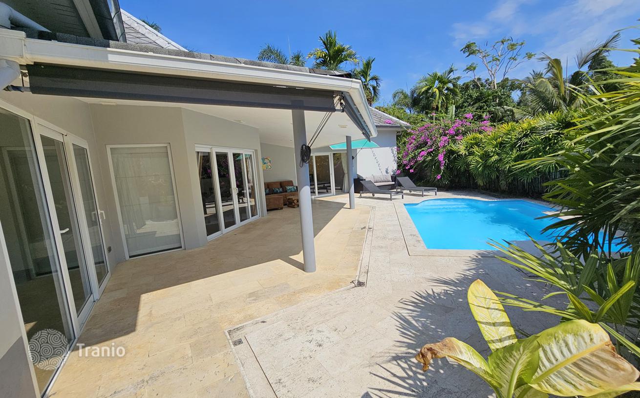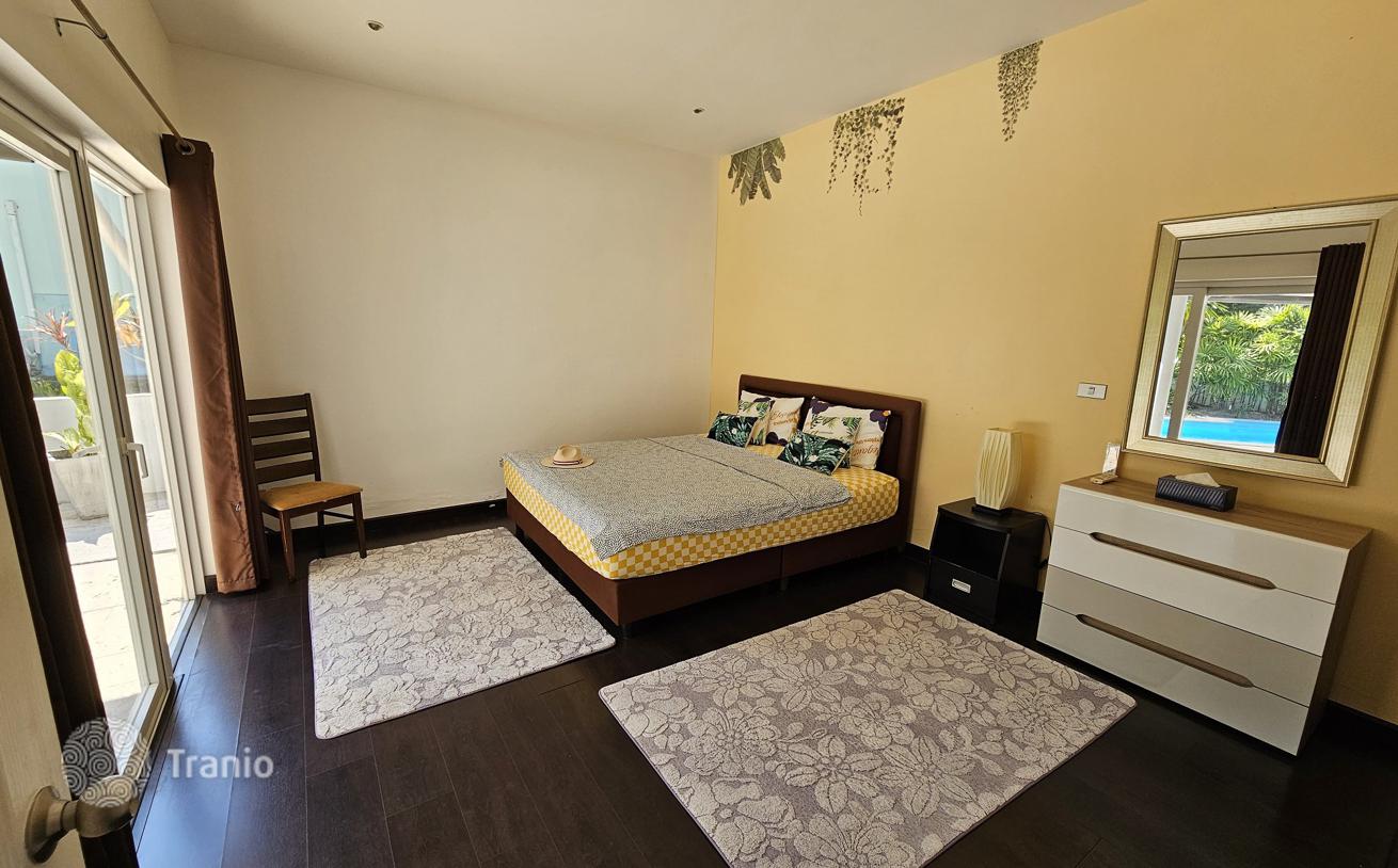 Уютная вилла полностью меблирована и включает бассейн, сад, крытую парковку. Электричество по государственному тарифу, вода бесплатная — есть собственная глубокая скважина.