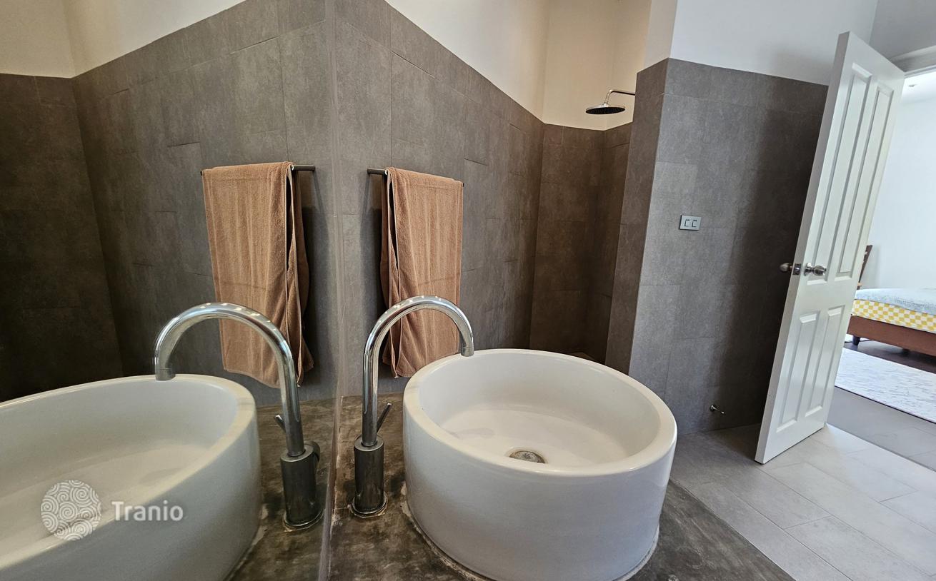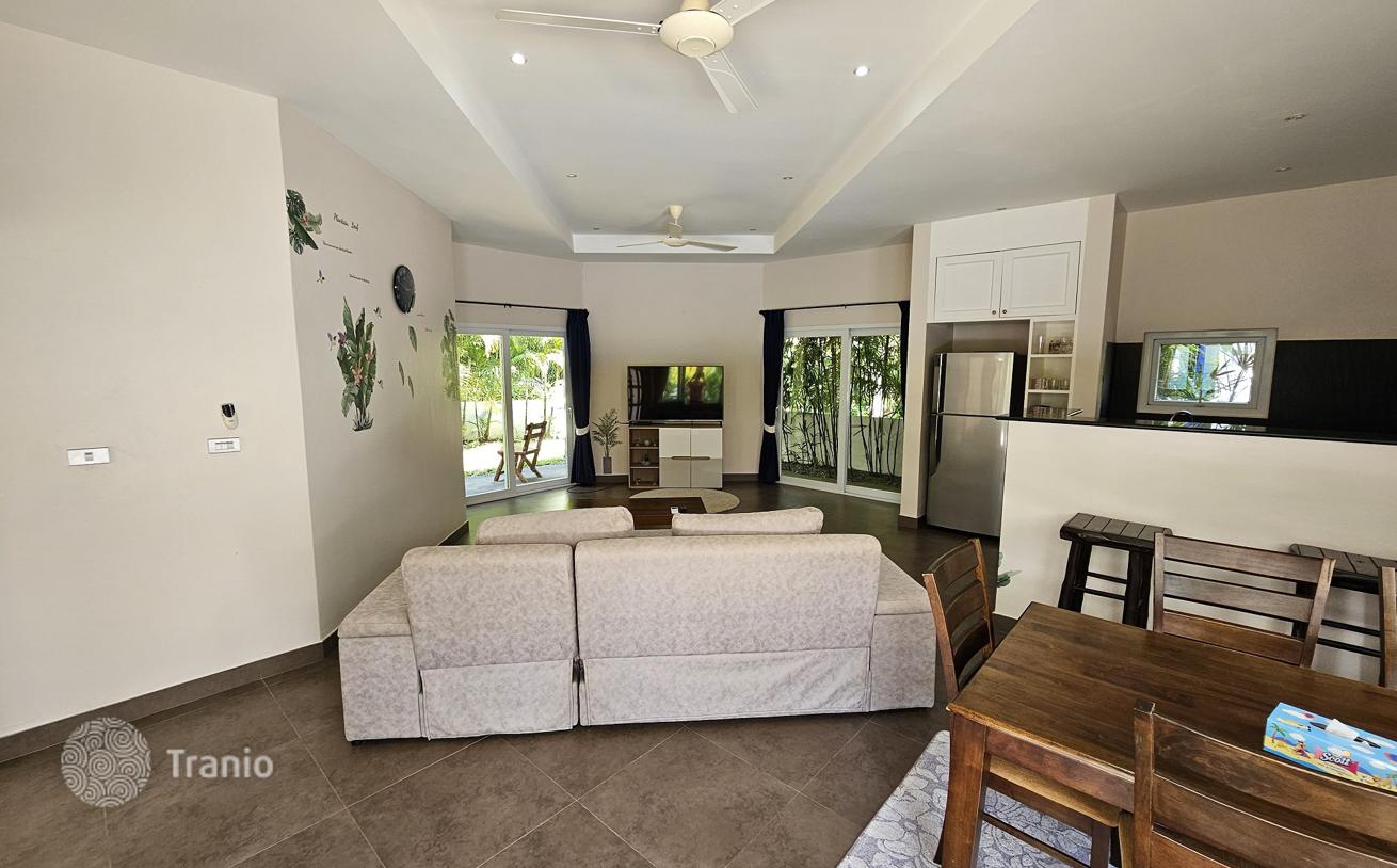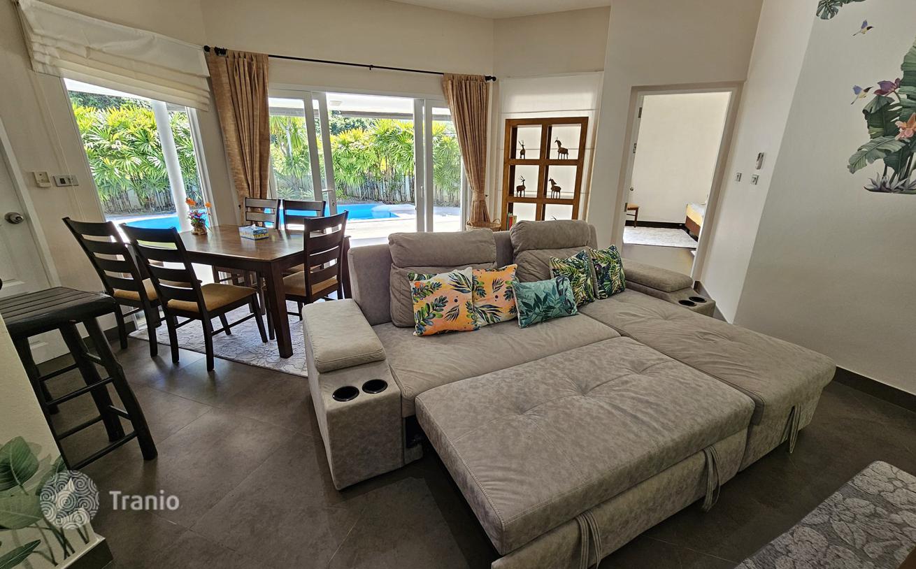 Уютная вилла полностью меблирована и включает бассейн, сад, крытую парковку. Электричество по государственному тарифу, вода бесплатная — есть собственная глубокая скважина.