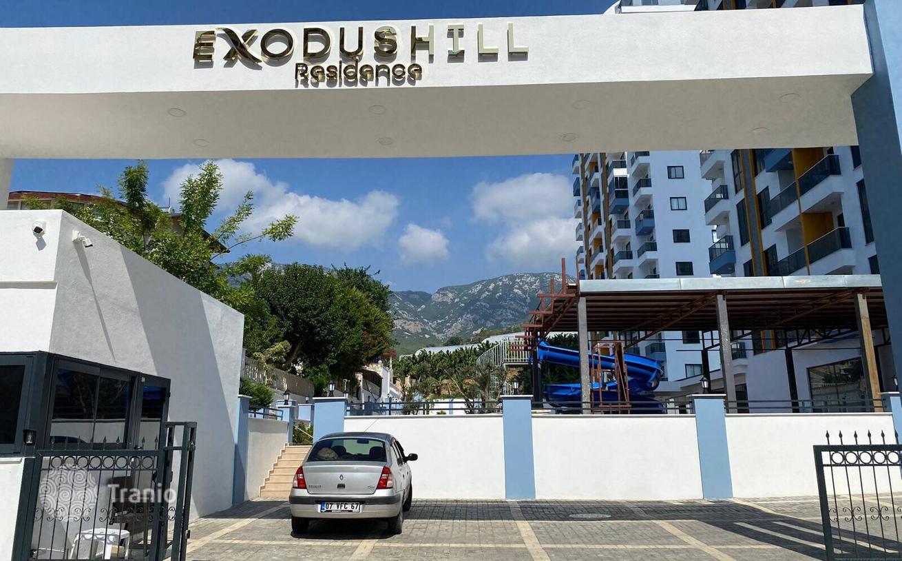 Меблированная квартира расположена в проекте Exodus Hill. В проекте есть общий бассейн, водная горка, турецкая баня, сауна, фитнес, рецепция, администрация территории, дежурный, комната отдыха, крытые и открытые детские игровые площадки, солярий, беседка, площадка для барбекю, охрана, система камер видеонаблюдения и открытая парковка.