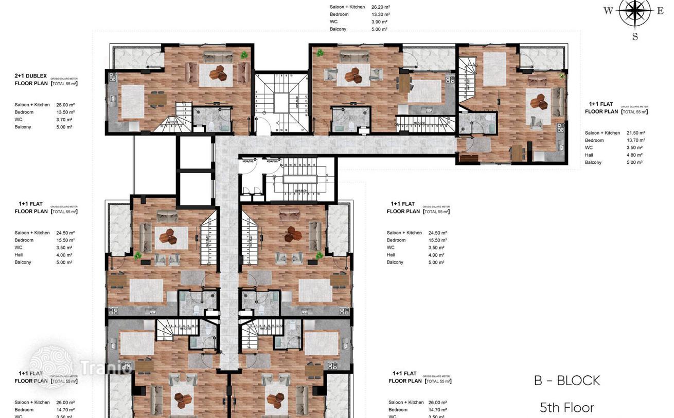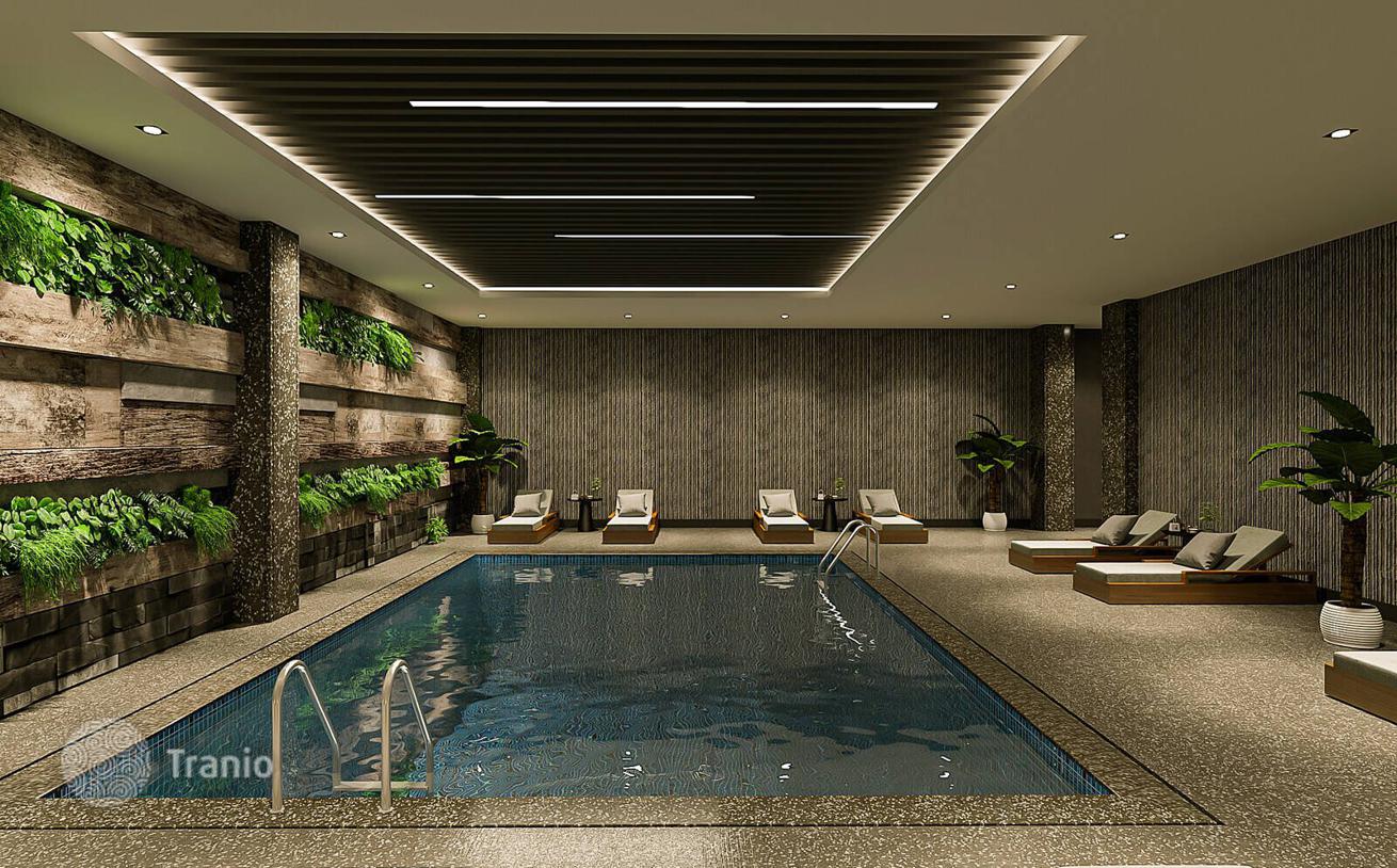 Квартиры находятся в комплексе, состоящем из двух блоков. На территории комплекса есть открытый бассейн, сауна, детская игровая площадка, крытая автостоянка, генератор, турецкая баня и лифт.