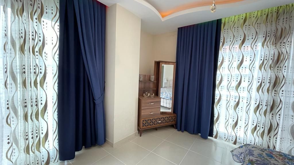 Общая площадь этой вторичной недвижимости составляет 160 квадратных метров. Планировка 3+1, всего 4 комнаты, из которых 3 спальни. Расположен этот дом на 5 этаже 9-этажного здания в самом центре Махмутлара на улице MAHMUTLAR.
