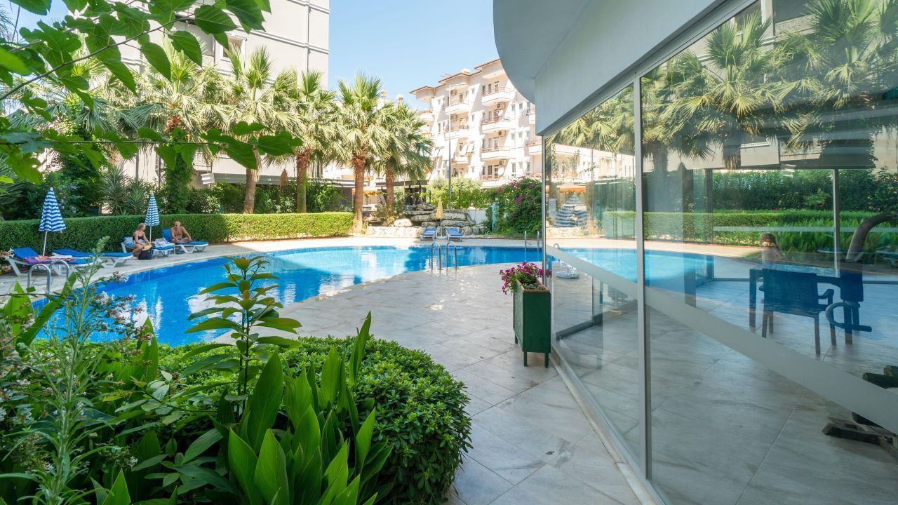 Площадь квартиры составляет 55 квадратных метров, включая одну спальню и просторную гостиную с кухней. Квартира расположена на первом этаже 12-этажного дома, что позволяет наслаждаться прекрасным видом на море и окружающую природу. В дополнение к этому, в комплексе есть фитнес-центр, бассейн, охраняемая парковка и лифт.