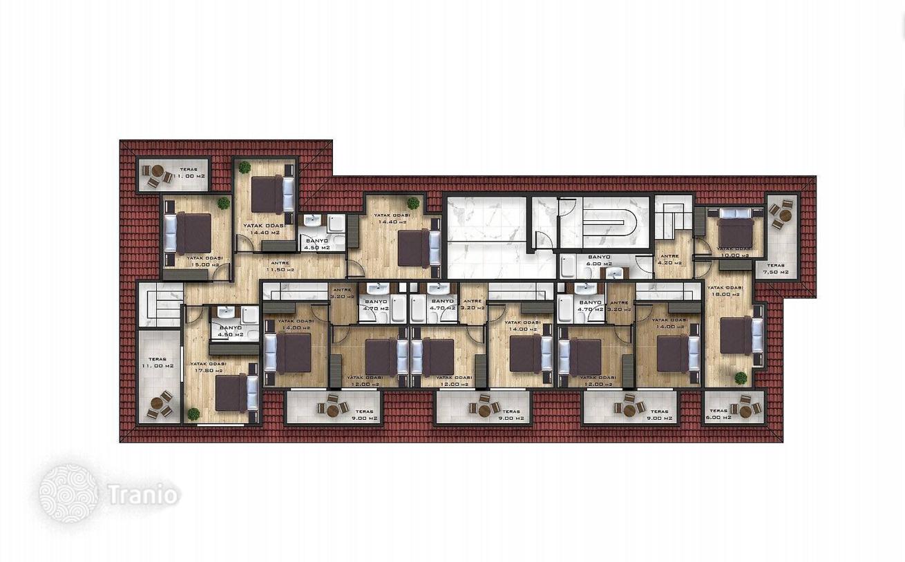 Предлагаемые квартиры находятся в Махмутларе, в жилом комплексе с отельной инфраструктурой и надежной охраной. Махмутлар продолжает стремительно разрастаться и благоустраиваться, поэтому уровень инвестиций в регионе продолжает расти. В этом средиземноморском районе прекрасно развита вся необходимая инфраструктура: есть большие супермаркеты, рестораны, пляжи, общественные парки, медицинские центры, аптеки и общественные учреждения.