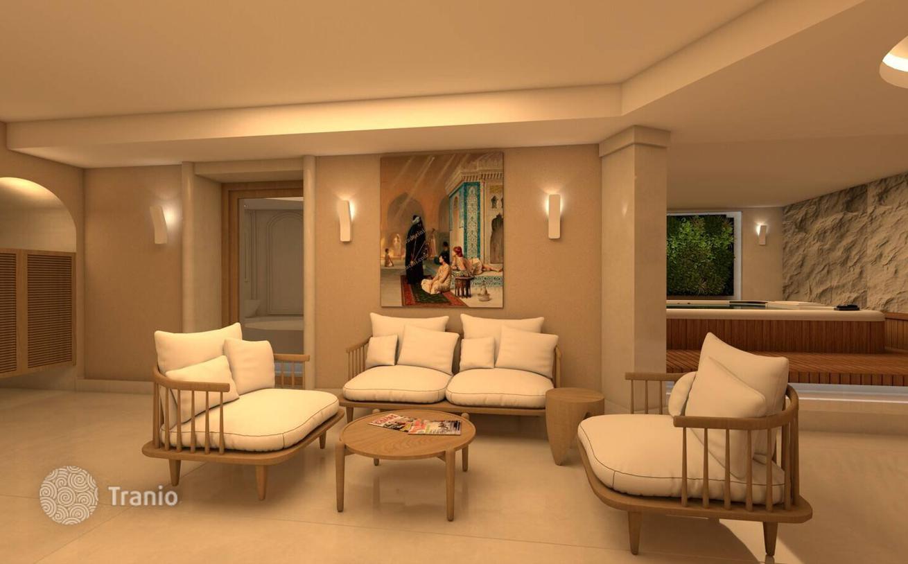 Расположенный в одном из самых престижных районов Алании, роскошный комплекс предлагает к услугам жильцов общий бассейн, фитнес-центр, бар, турецкую баню, паровую баню, сауну, бассейн с холодной водой (после сауны), комнату отдыха, детскую площадку, кафе, магазин, WiFi, услуги управляющего комплексом, открытую парковку, круглосуточную охрану, видеонаблюдение и генератор.