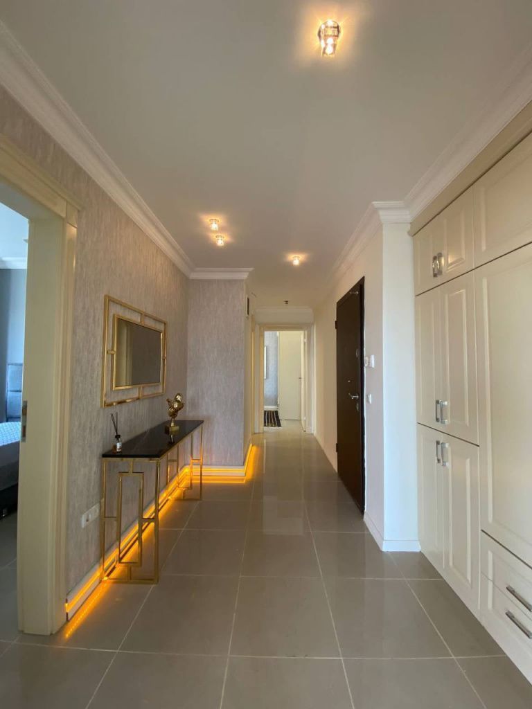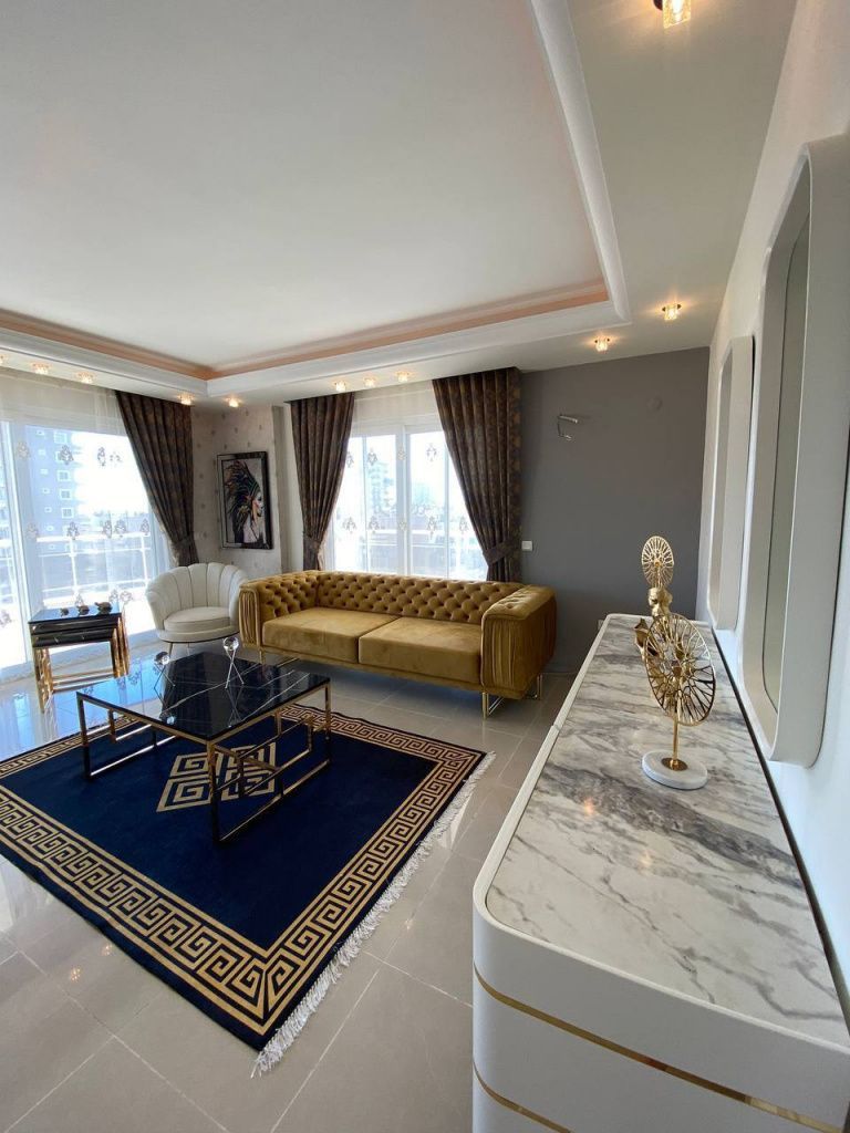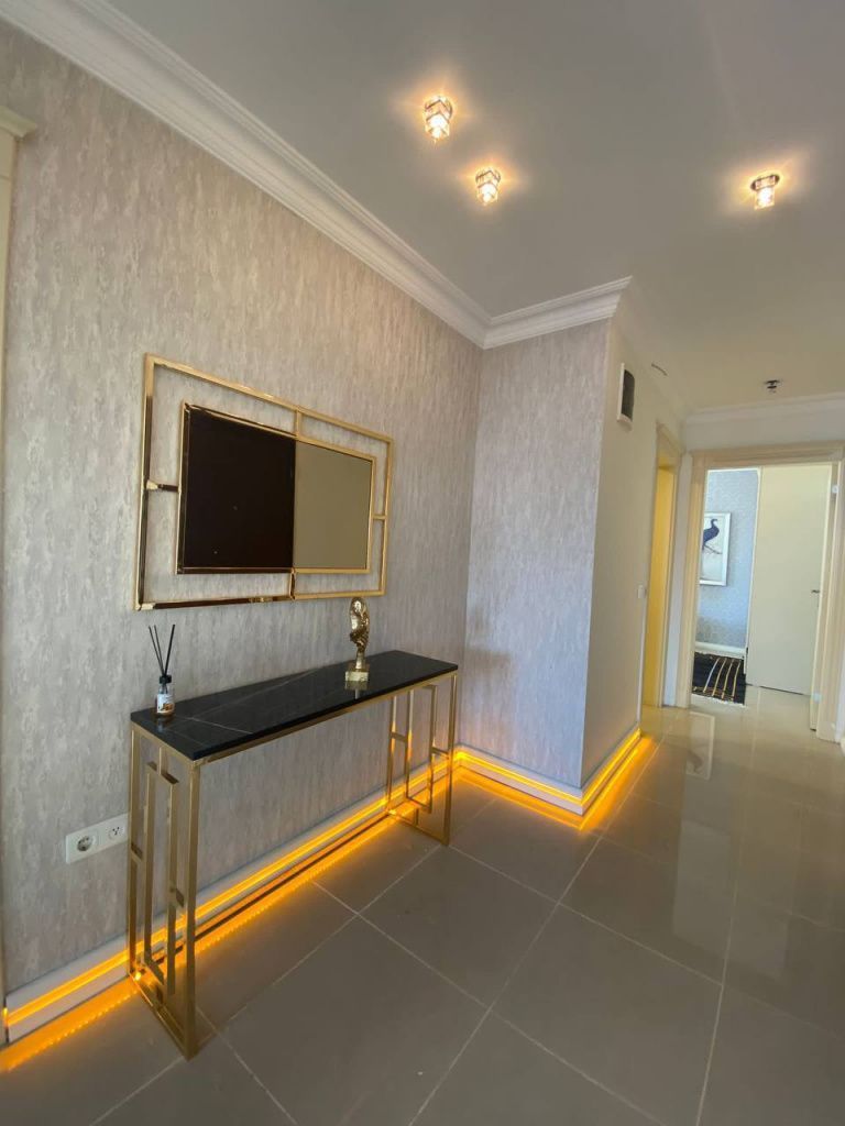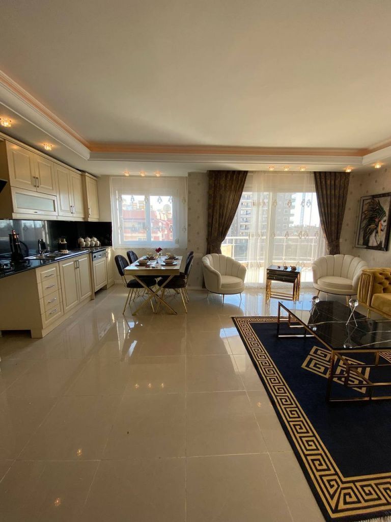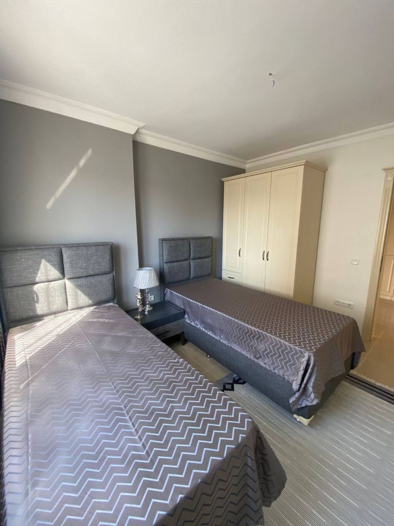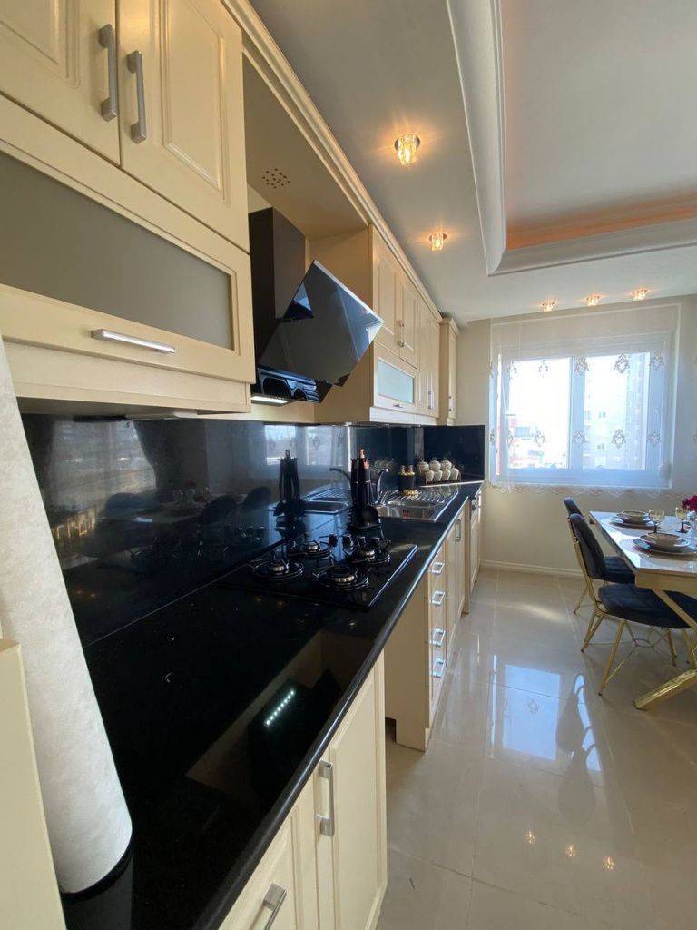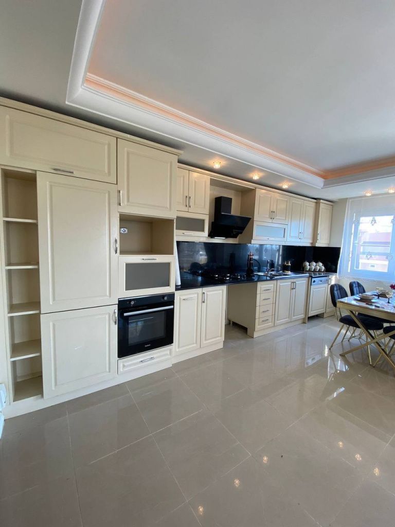 Продаётся квартира в новом жилом комплексе, построенном в 2012 году. Общая площадь 120 квадратных метров, планировка 2+1. Квартира находится на 5 этаже, откуда открывается прекрасный вид на море, расстояние до которого всего 150 метров.