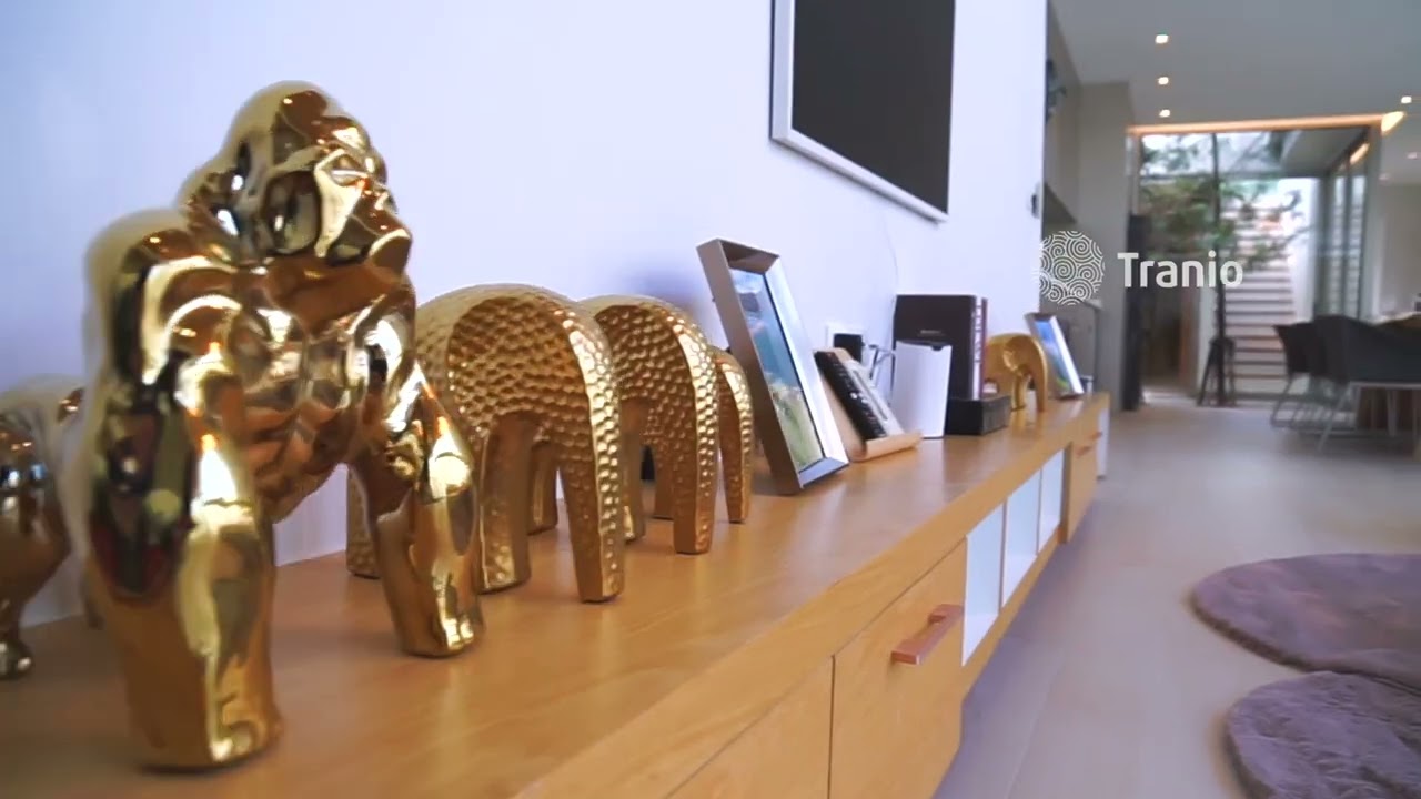 Первый этаж — прихожая, гостиная, кухня, 2 спальни, 2 ванные комнаты, прачечная, летний душ, терраса с садом и бассейном.