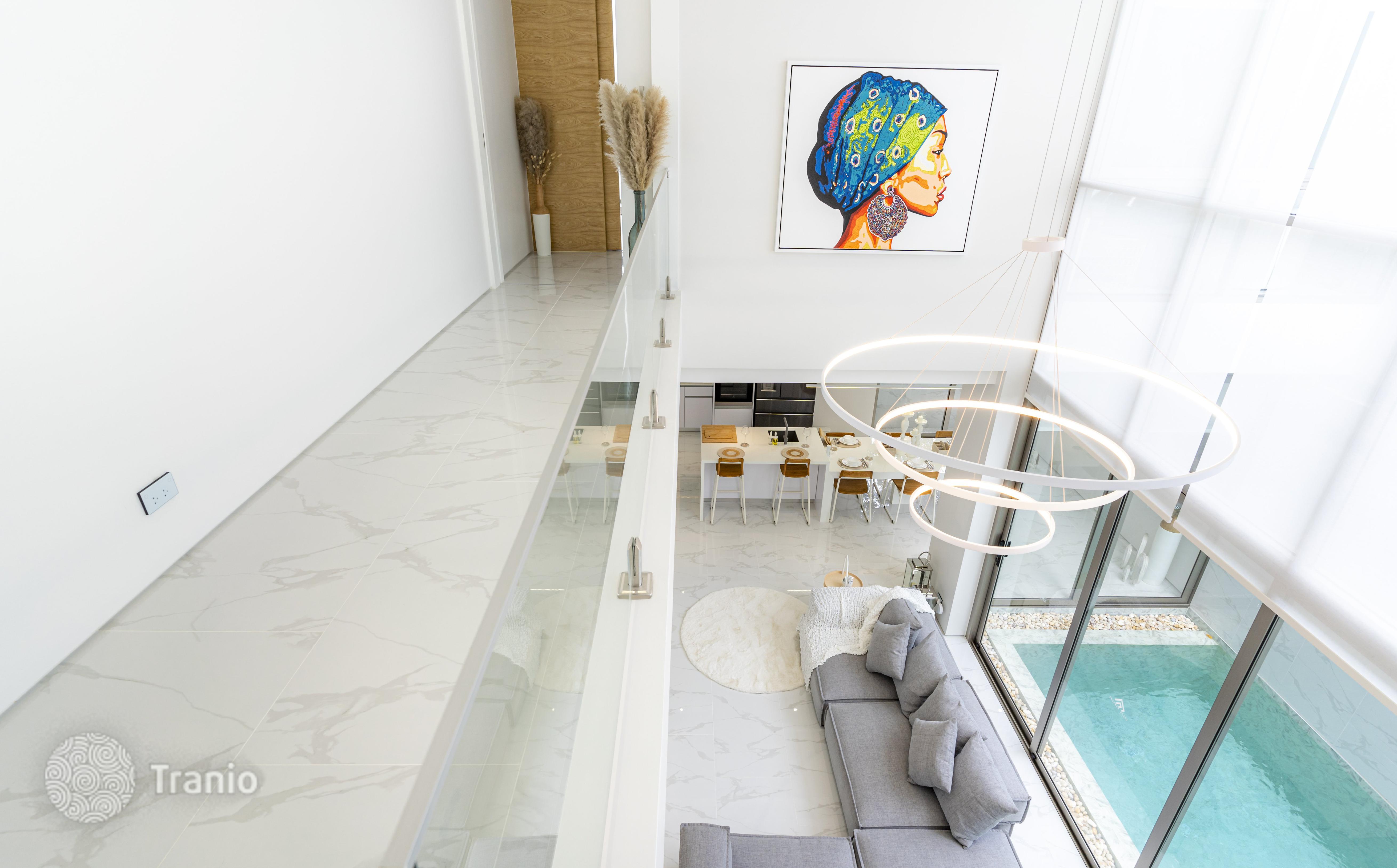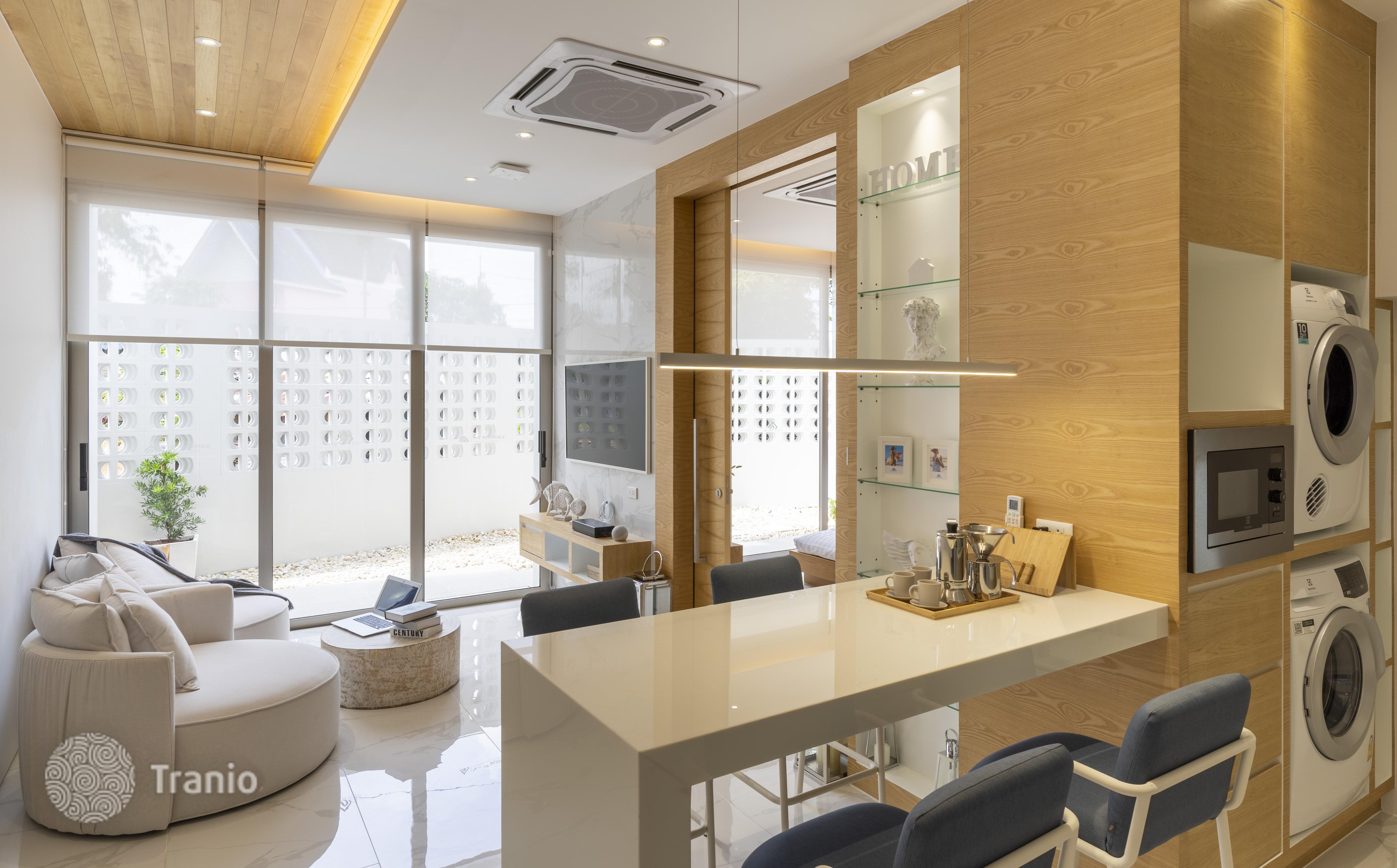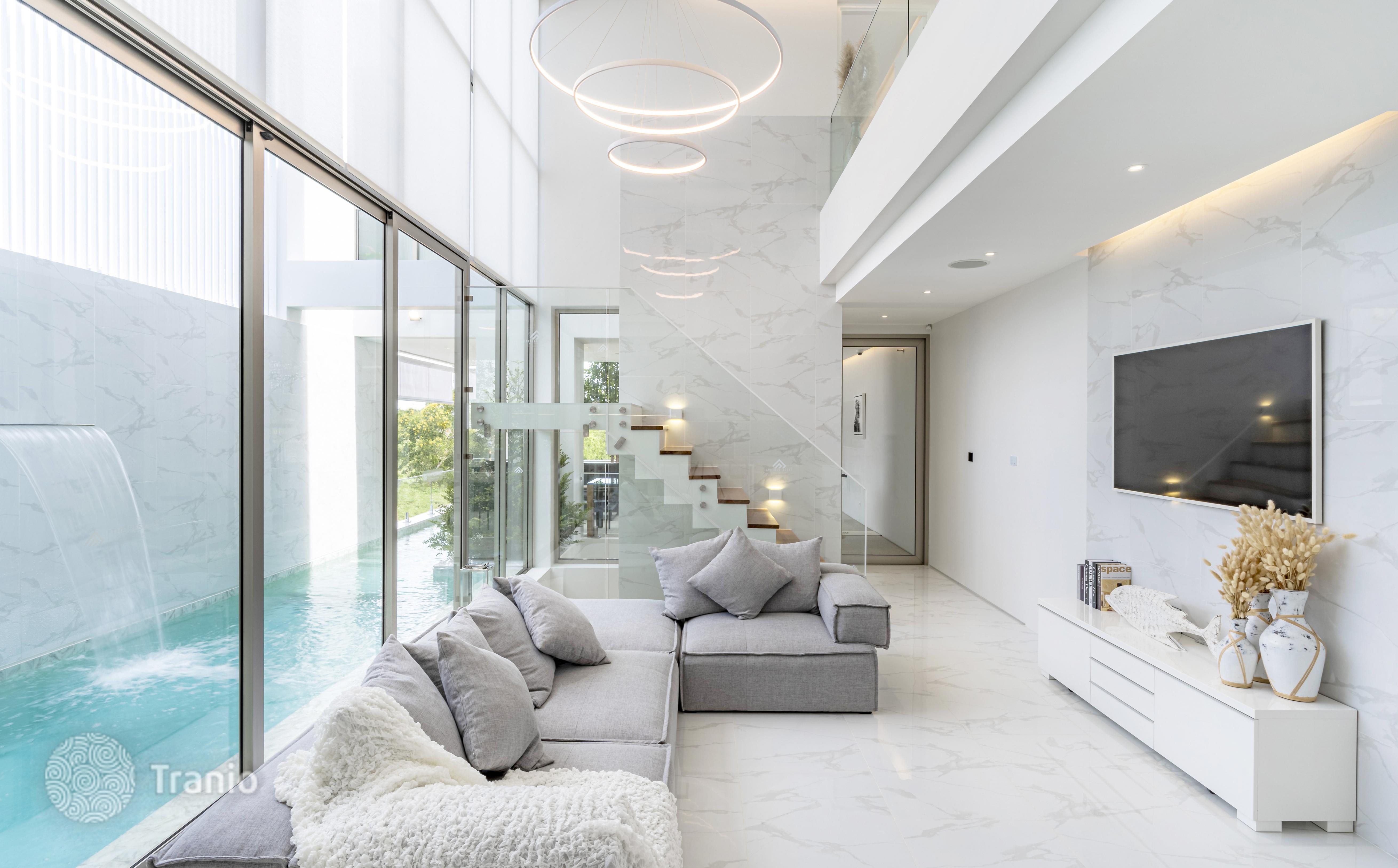 В каждом доме есть частный бассейн, парковка, система «умного дома». Есть доступ к общему бассейну комплекса и общему саду. В комплексе также есть коворкинг-центр, система охраны, клуб, фитнес-центр.