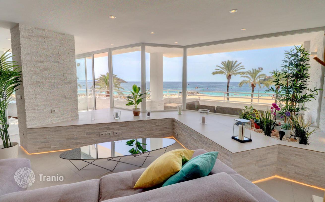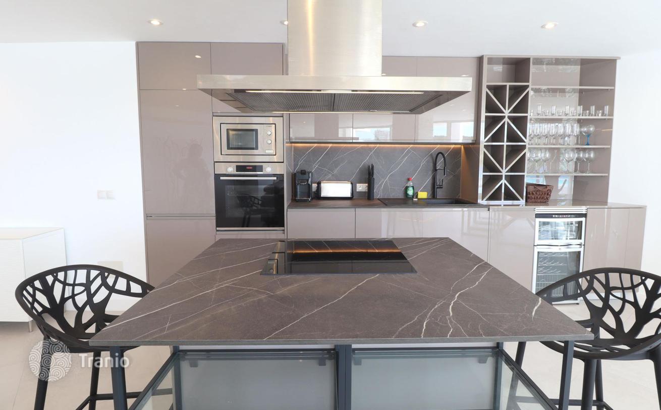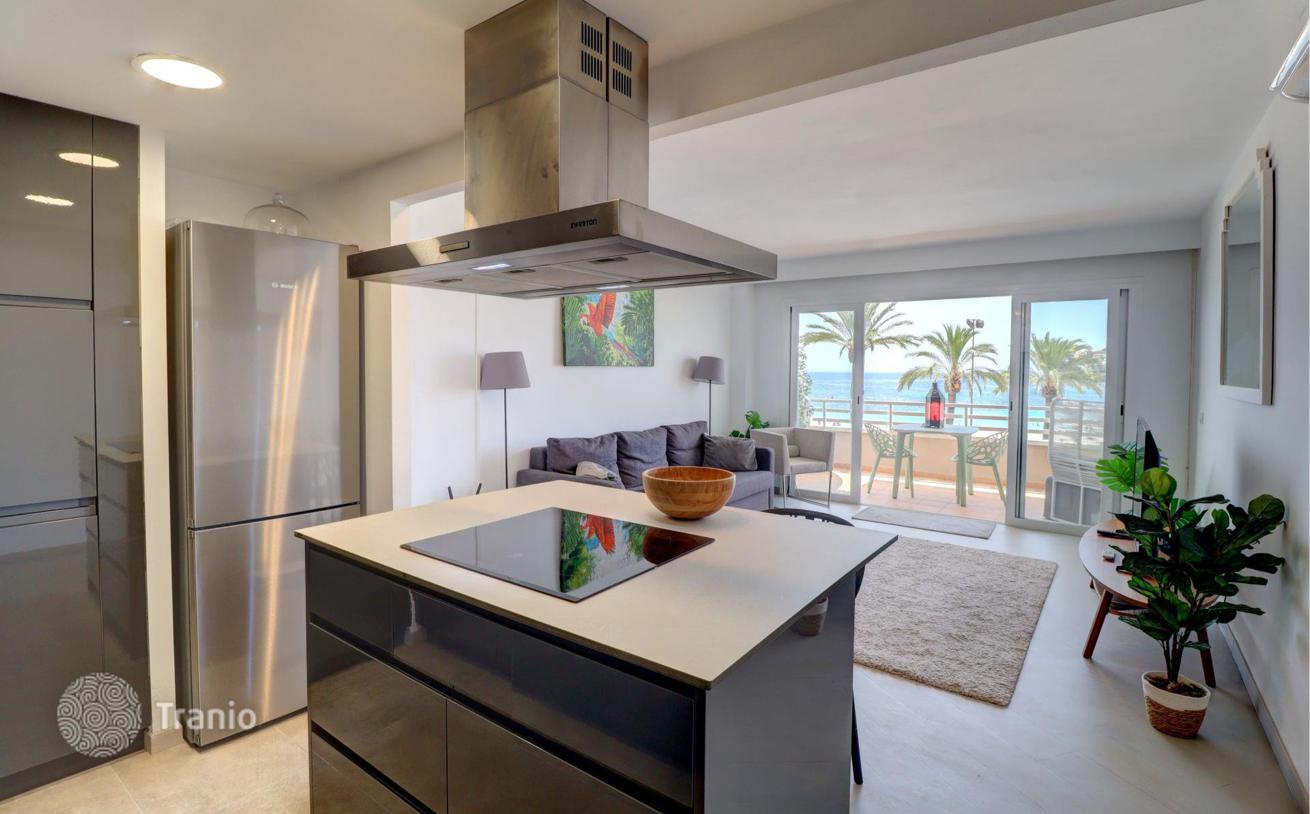 Более просторная угловая квартира имеет 2 спальни, очень красивую и большую открытую гостиную/столовую с кухней и террасу площадью 15 м² с прямым видом на пляж и море. В одной из спален есть даже сауна.