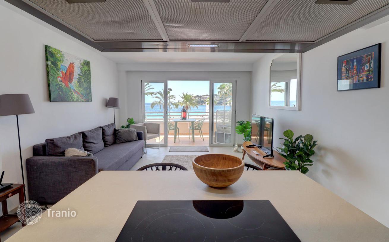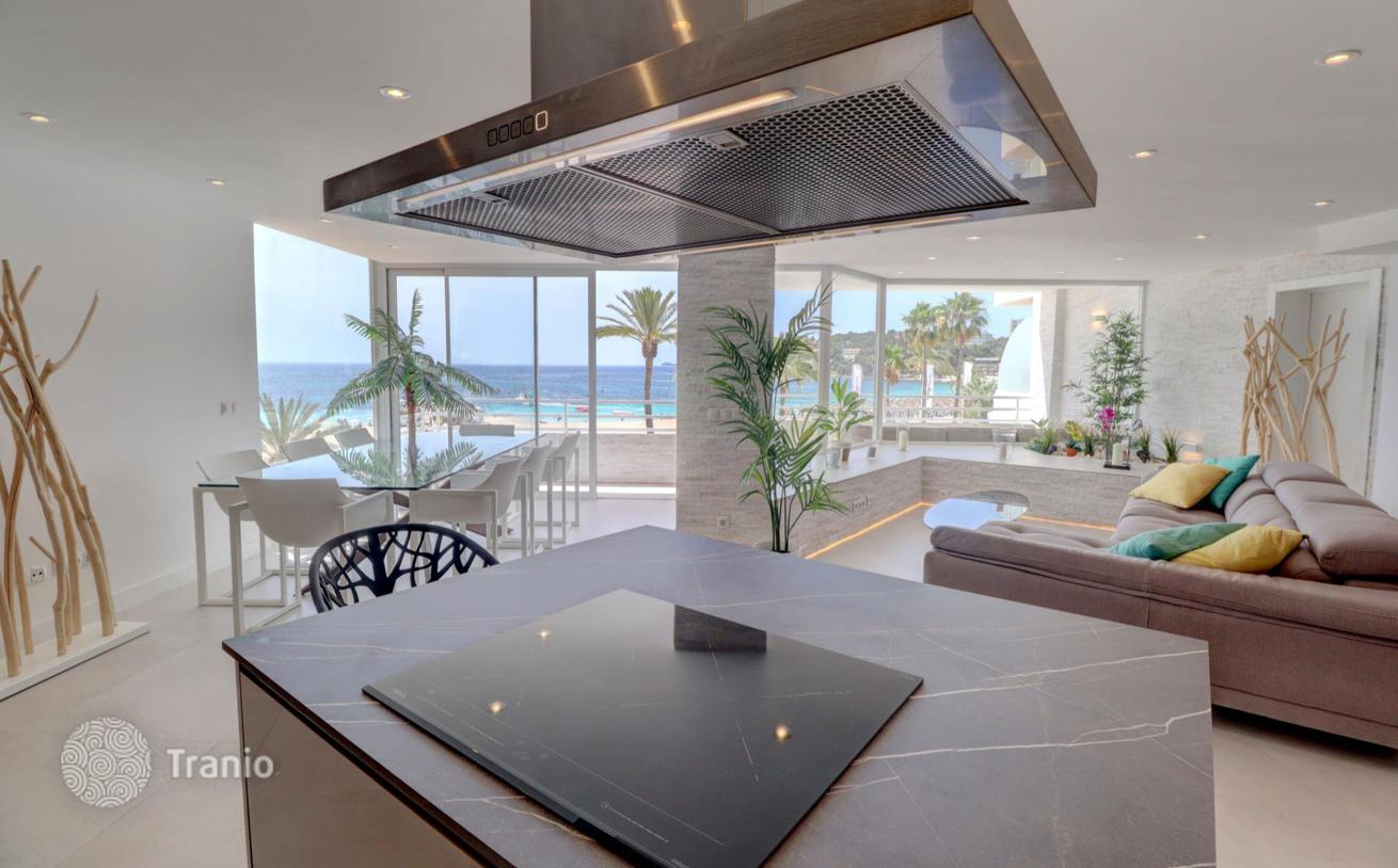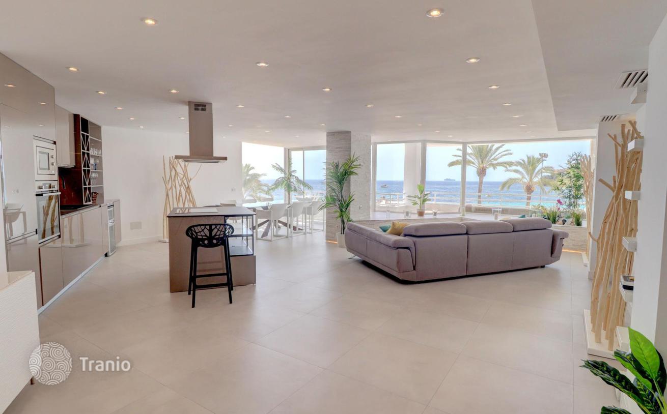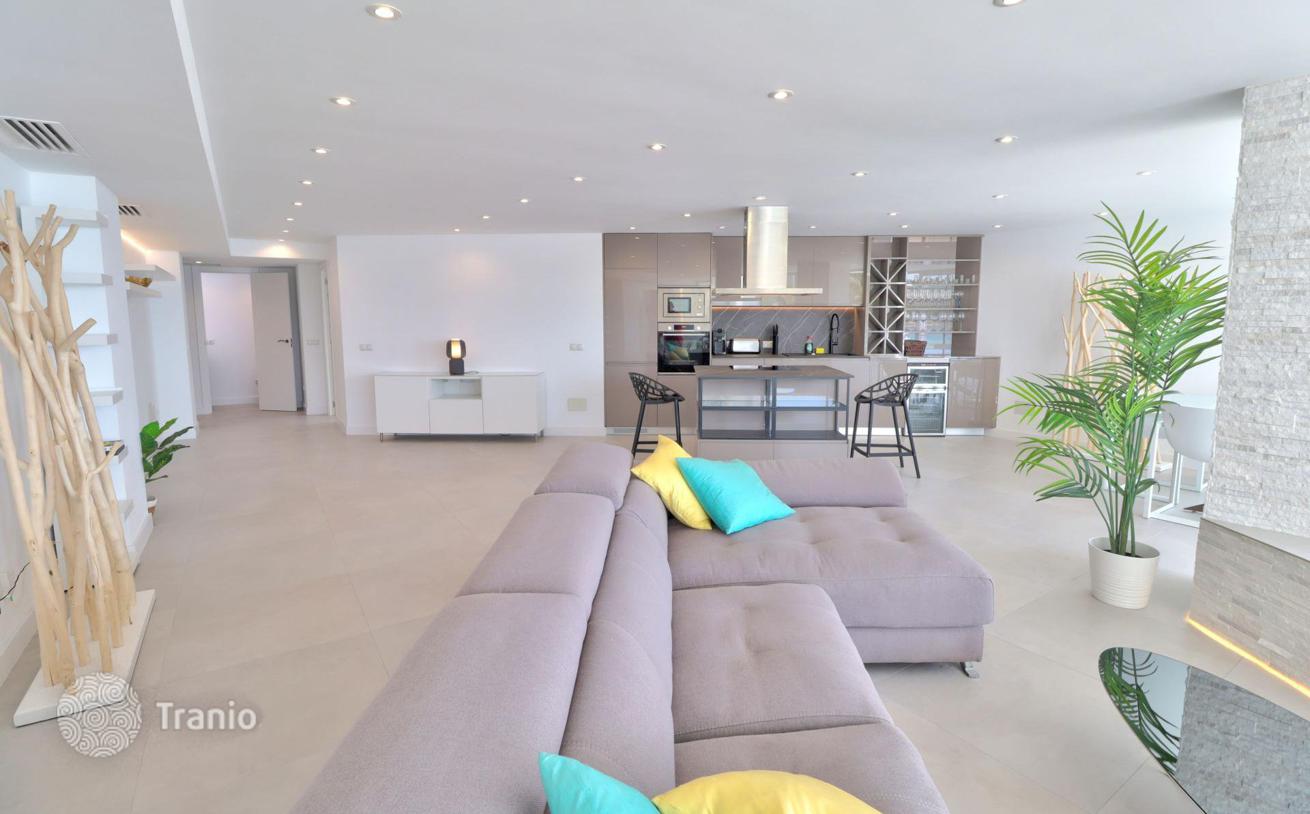 Более просторная угловая квартира имеет 2 спальни, очень красивую и большую открытую гостиную/столовую с кухней и террасу площадью 15 м² с прямым видом на пляж и море. В одной из спален есть даже сауна.