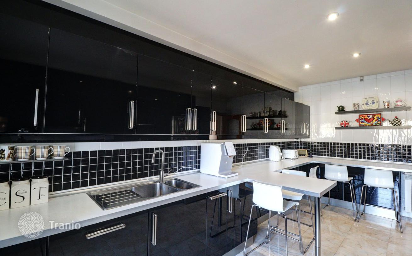 Есть полностью оборудованная новая кухня с подсобным помещением. Просторная гостиная, ведущая на террасу и в сад, где вы можете насладиться большим бассейном в летние месяцы и гидромассажной ванной в зимние месяцы. На верхнем этаже расположены 3 спальни с двуспальными кроватями и 2 ванные комнаты, а 2 спальни имеют собственные террасы. Все спальни оснащены кондиционерами. Четвертая спальня и душевая находятся на первом этаже, что очень удобно для гостей.