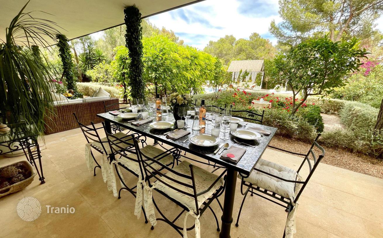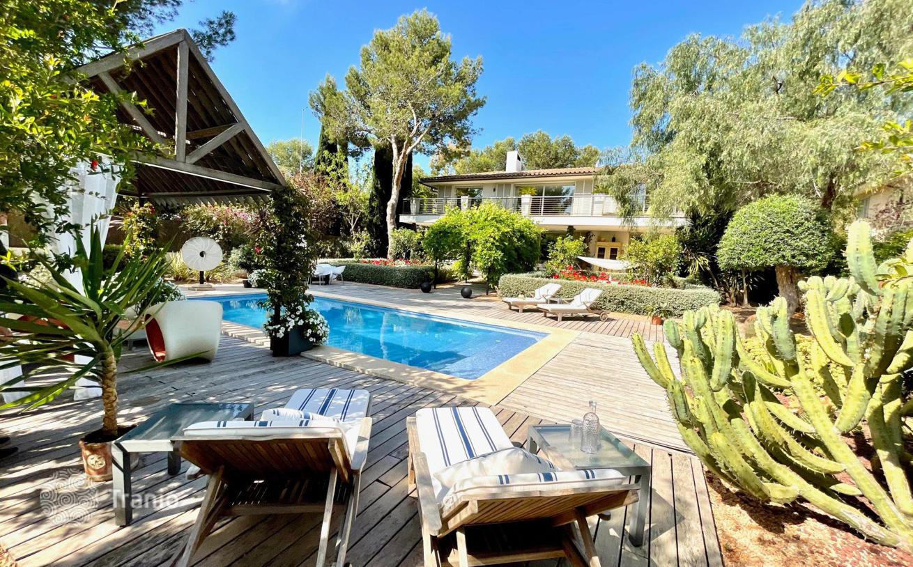 Расположена в очень популярной и эксклюзивной урбанизации Соль‑де-Майорка. Есть открытые и крытые террасы, идеально подходящие для отдыха на свежем воздухе. На красивой территории есть бассейн, беседка, площадка для игры в петанк, фонтаны, клумбы с розами, фруктовые деревья и сад кактусов.