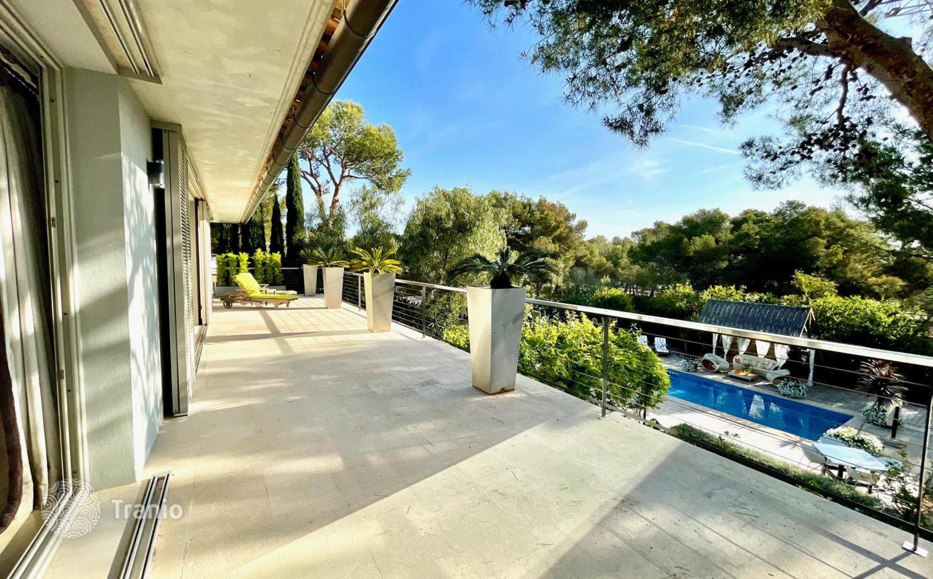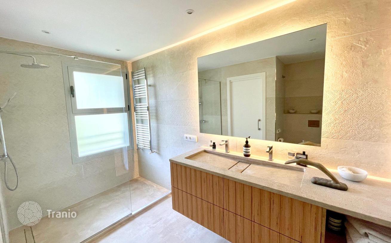 Эта стильная семейная вилла состоит из прихожей с гардеробной, ведущей в просторный салон, идеально подходящий для приема гостей, с гостиной и столовой. Первоклассная итальянская дизайнерская кухня открытой планировки оснащена оборудованием Siemens и винным холодильником Gaggenau на 80 бутылок, отдельной кладовой и отдельным подсобным помещением. На верхнем этаже есть большая телевизионная гостиная с настоящим камином, четыре спальни с двуспальными кроватями, все с ванными комнатами и все с выходом на балкон.