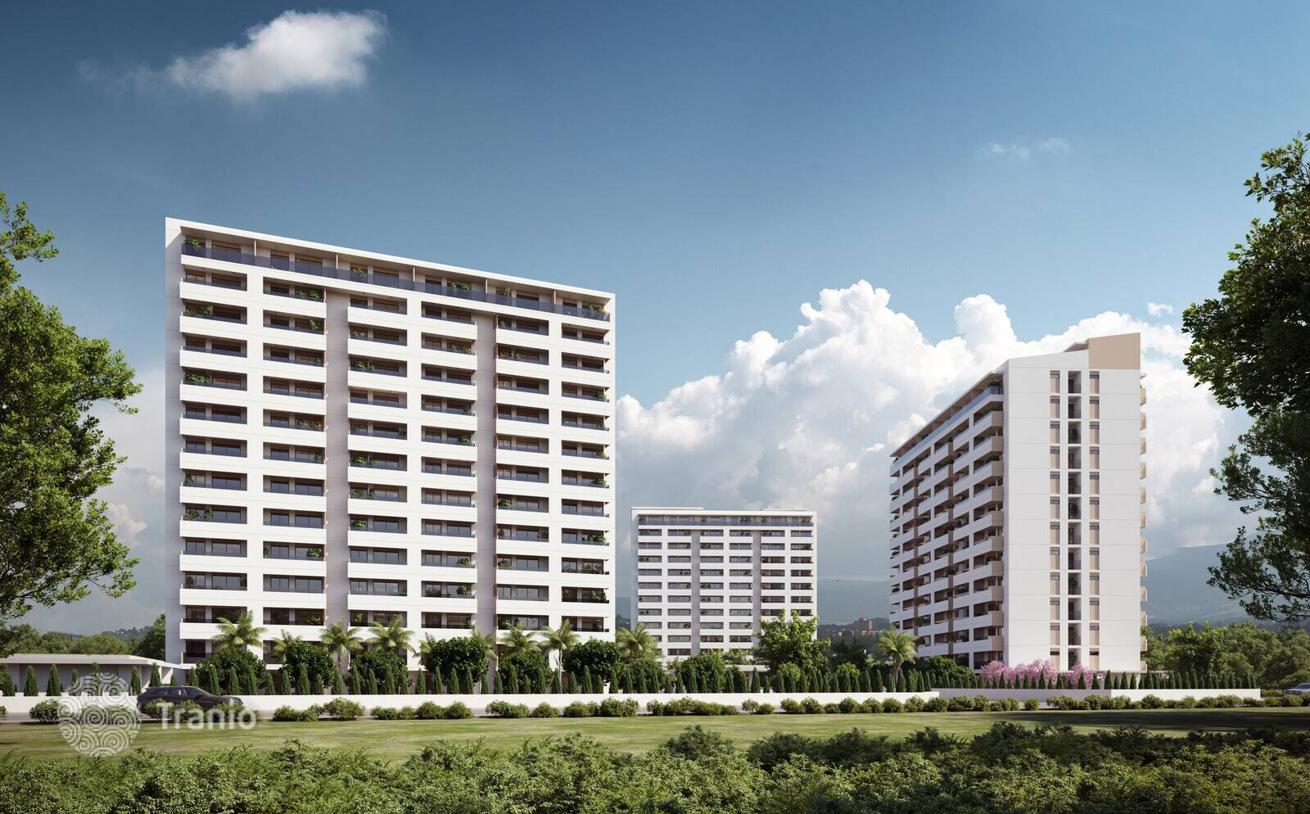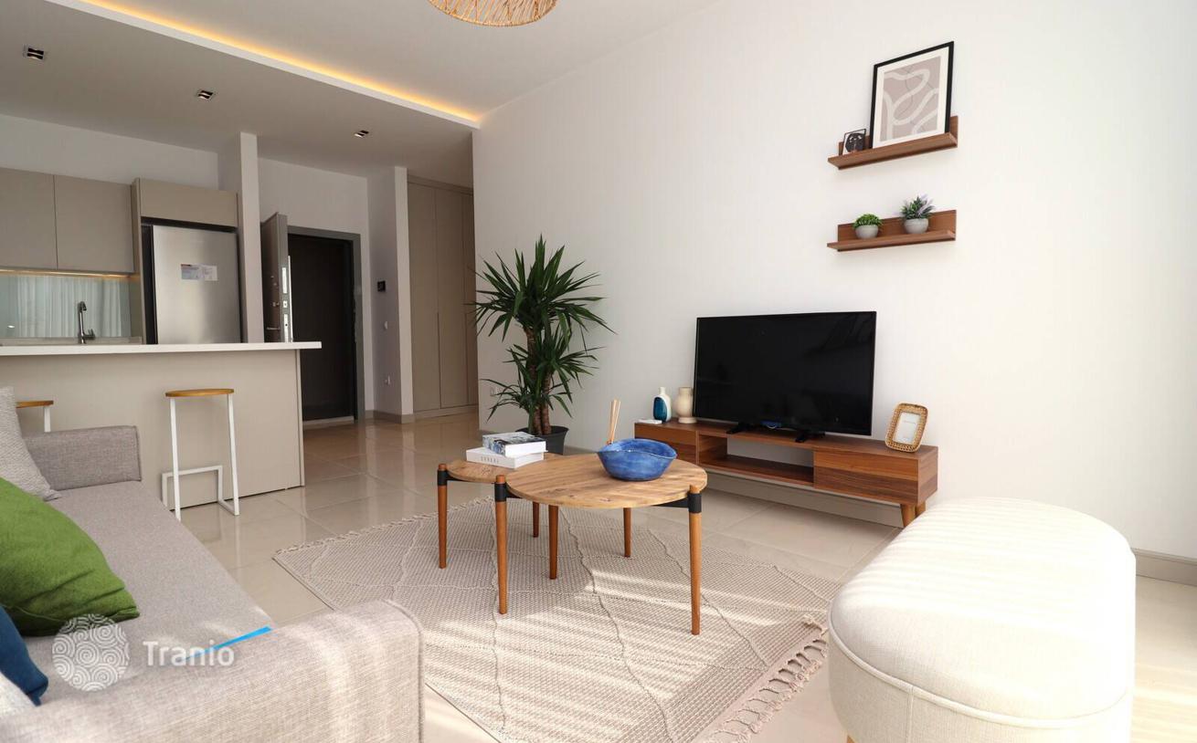 В зависимости от типа квартиры, у нее может быть собственный сад. Апартаменты оснащены встроенной кухонной техникой (варочной поверхностью, духовкой и вытяжкой), точечной подсветкой, гранитной столешницей, встроенным шкафом, стальной входной дверью, смарт-домофоном, полами из ламината и плитки, душевой кабиной, вешалкой для верхней одежды и окнам ПВХ.