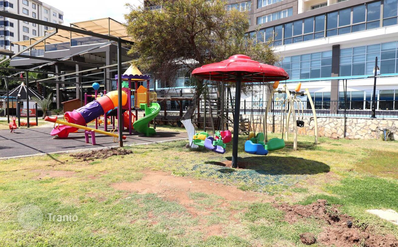 Квартиры в Мерсине, Турция, находятся в смешанном проекте, построенном на земельном участке площадью 16 726 м². Помимо апартаментов, в проекте также есть отель, построенный той же строительной компанией. Гости жителей апартаментов могут остановиться в этой гостинице по специальным сниженным ценам. В проекте есть 3 аквапарка, бассейны, прогулочные дорожки, качели, гамаки, зона барбекю, открытые парковки, генератор, детские площадки, беседки, круглосуточная охрана, камеры видеонаблюдения.