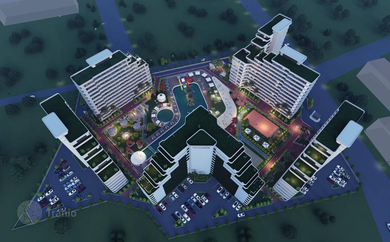 Квартиры расположены в комплексе, состоящем из 5 блоков на общей площади 26 000 м². В комплексе есть аквапарк, открытый бассейн, открытая автостоянка, фитнес, турецкая баня, кинотеатр, детская игровая площадка, 10 барбекю и зона отдыха, сторож, лифт, генератор, круглосуточная охрана и камеры наблюдения.