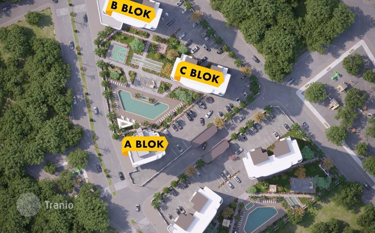 Комплекс, состоящий из квартир с видом на море, город и природу, построен на земельном участке площадью 14 000 м² и состоит из 3 квартир. На его территории есть открытый бассейн, аквапарк, баскетбольная площадка, турецкая баня, сауна, фитнес, детская игровая площадка, камелии, место для костра, социальный клуб, открытая парковка, генератор, лифты, круглосуточная служба безопасности и камеры видеонаблюдения.