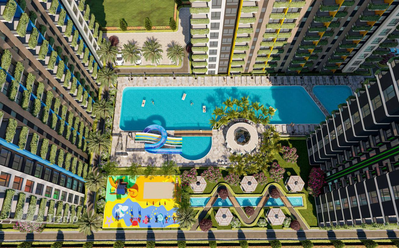 Проект состоит из 3-х блоков, построенных на площади 9740 м². На общей территории есть открытый бассейн, аквапарк, сауна, футбольное поле, баскетбольная площадка, фитнес, беседки, зона барбекю, детская площадка, открытая парковка, генератор, лифт, круглосуточная охрана, камеры видеонаблюдения.