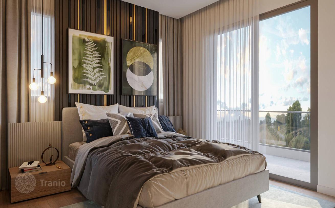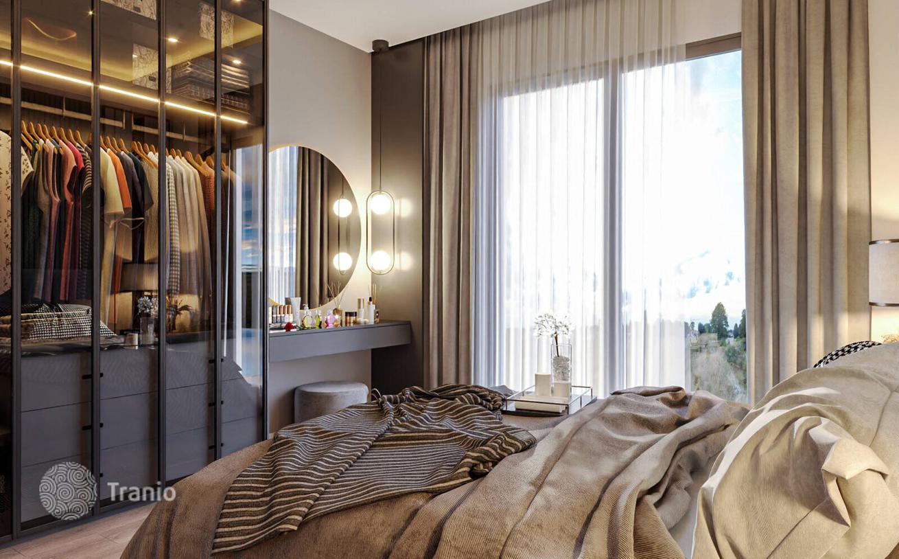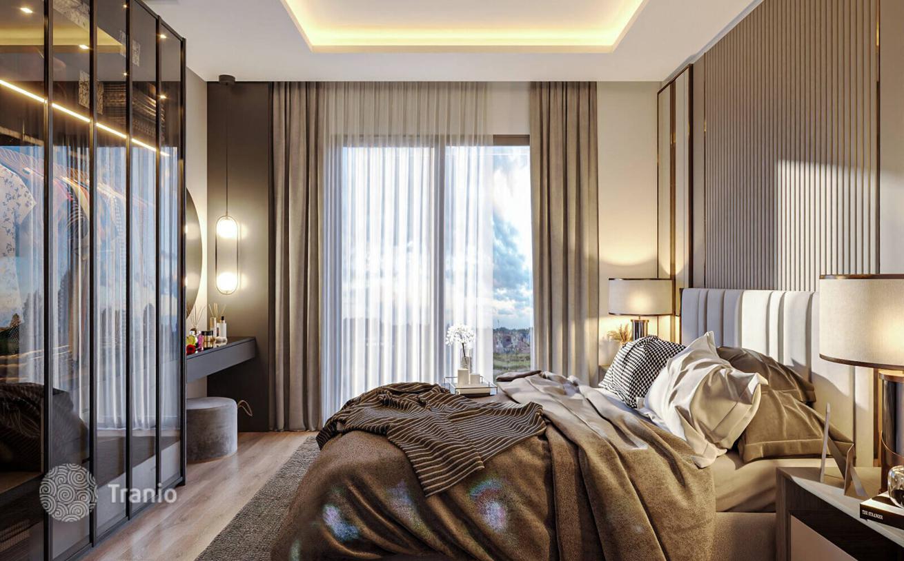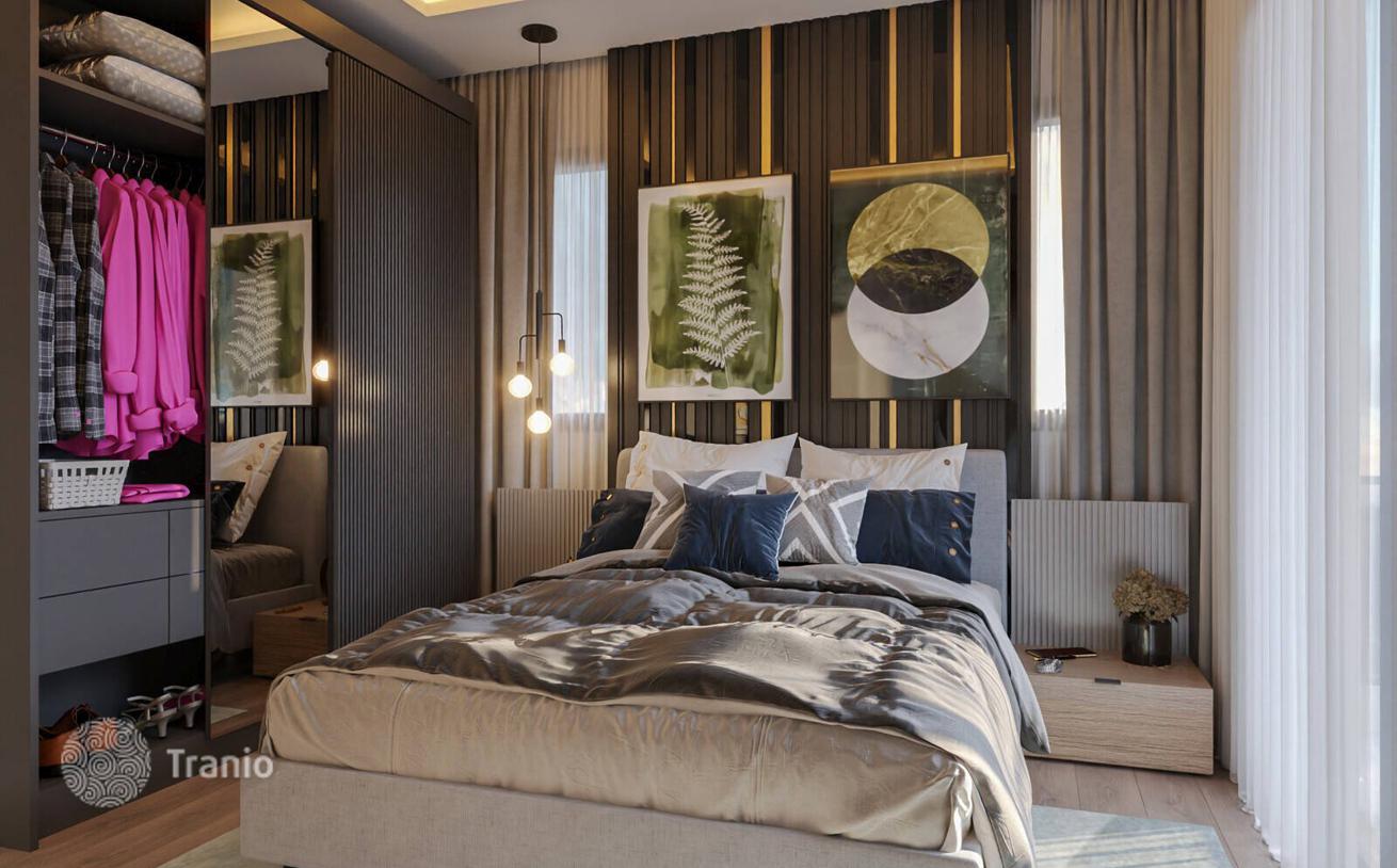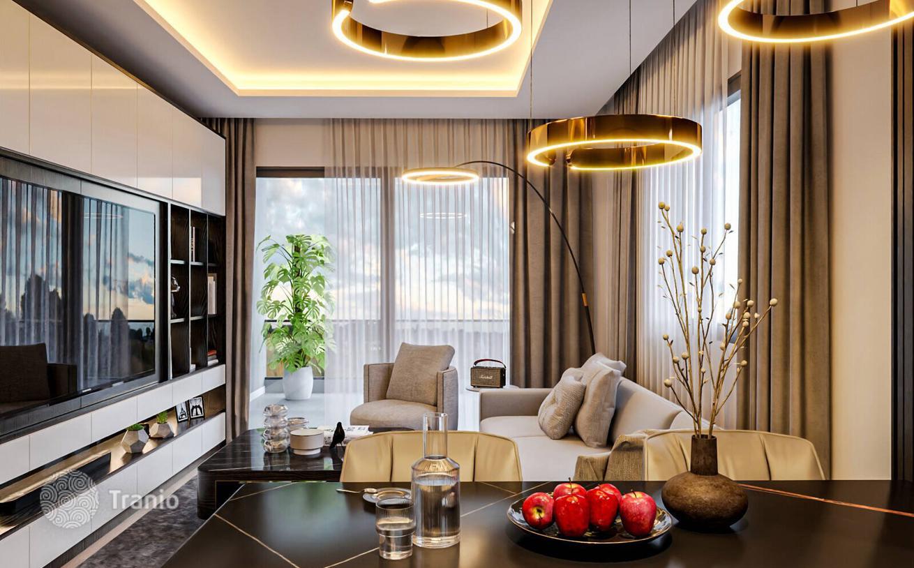 Всего в комплексе находится 94 квартиры. Недвижимость с видом на море и город оснащена такими элементами, как подвесной потолок, вешалка для одежды, ванная комната, балкон, стальная входная дверь, окна ПВХ, душевая кабина, смарт-домофон, стеклянные балконные ограждения и гранитные столешницы.