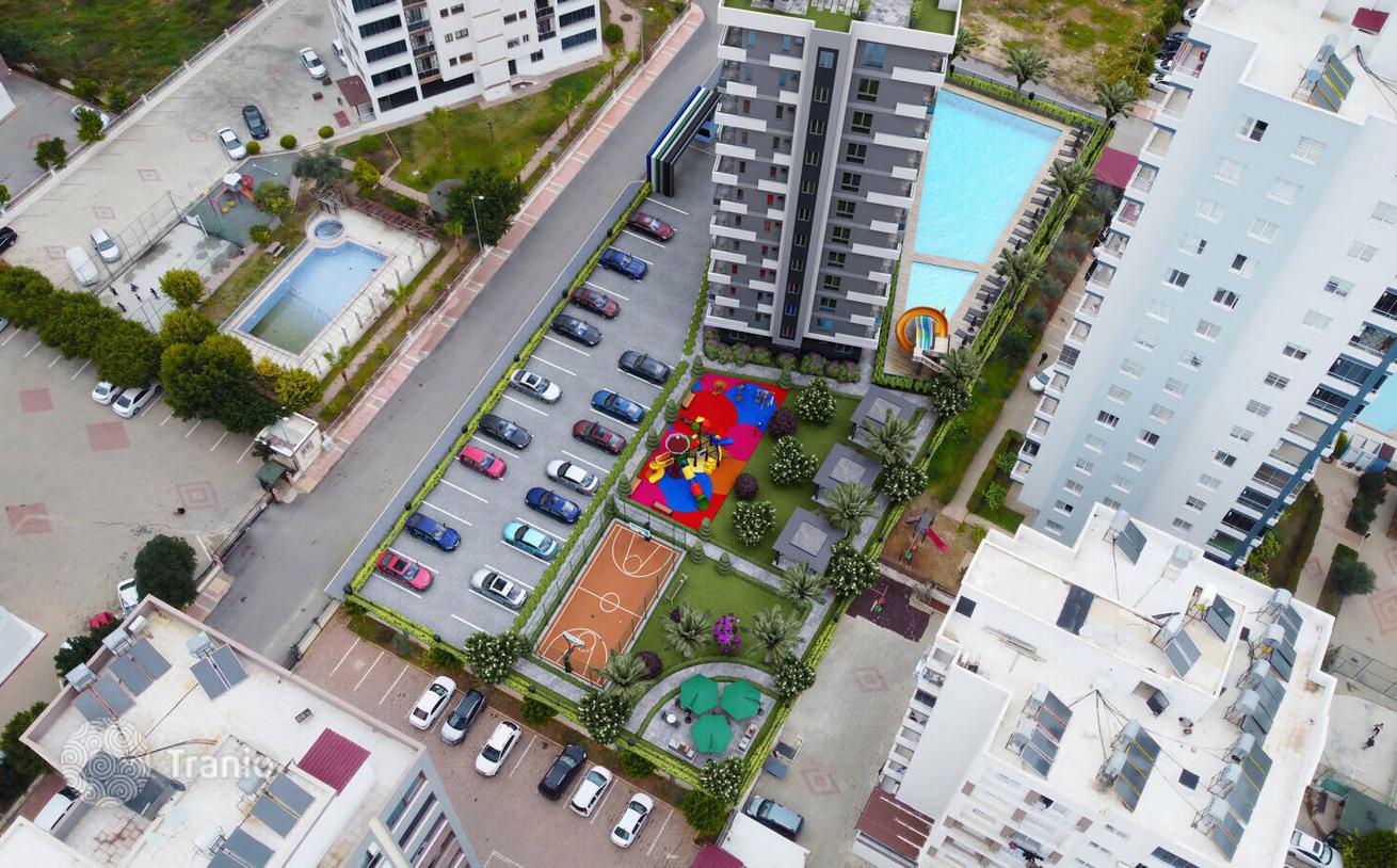 Квартиры в Мезитли расположены в проекте, состоящем из одного блока, на земельном участке площадью 3052 м². На общей территории представлены открытый бассейн, водные горки, баскетбольная площадка, теннисный корт, открытая парковка, детская площадка, общий сад, беседка, лифт, генератор, круглосуточная охрана и системы видеонаблюдения.
