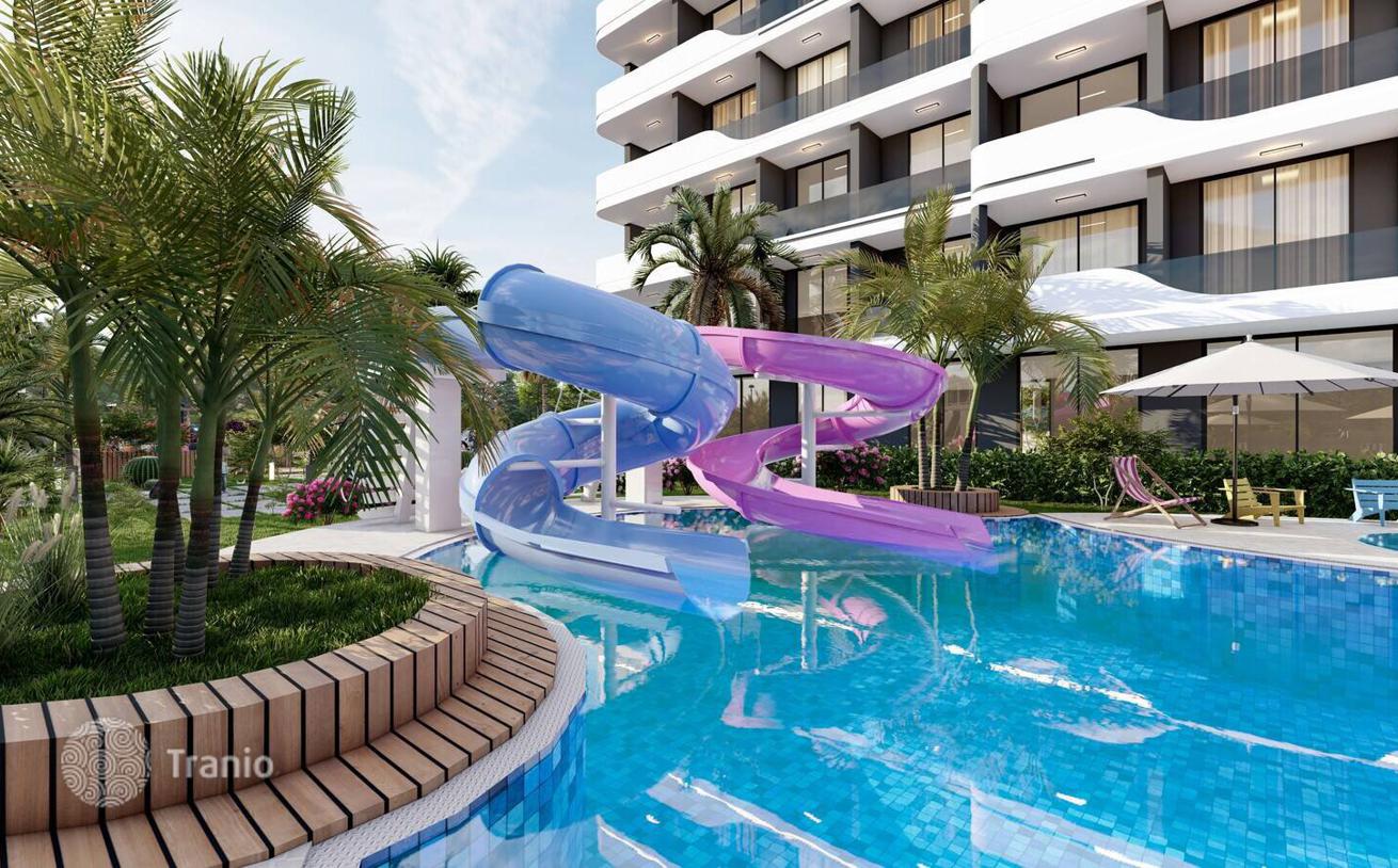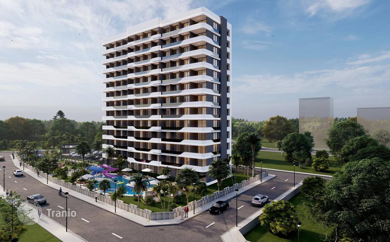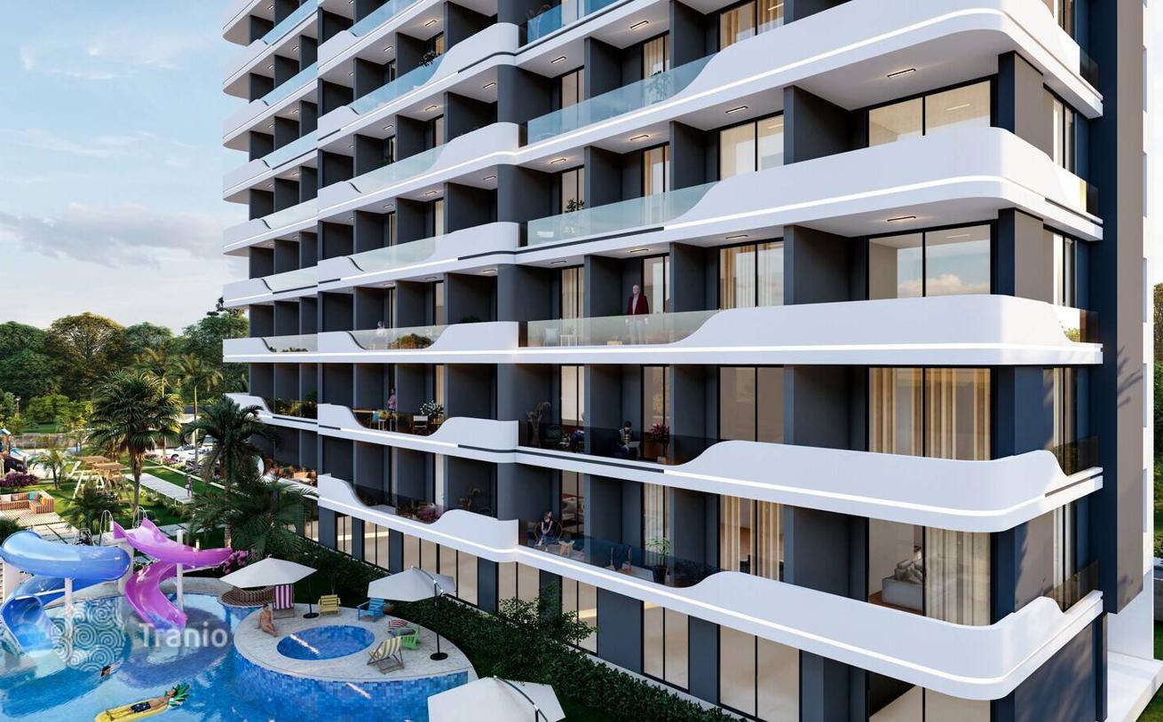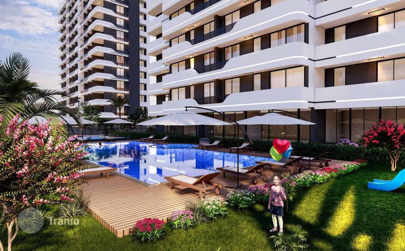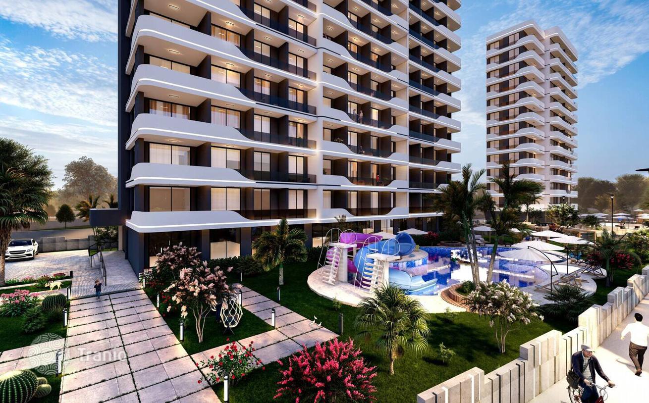 Квартиры в Благоустроенном Проекте в Мерсине, Каргыпынары. Шикарные квартиры находятся в шаговой доступности от моря и главной дороги в Мерсине, Каргыпынары. В жилом комплексе, состоящем из одного блока, есть аквапарк, сауна, спа и т. д.