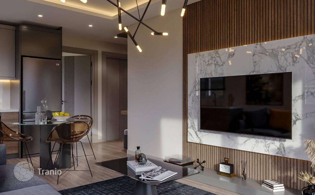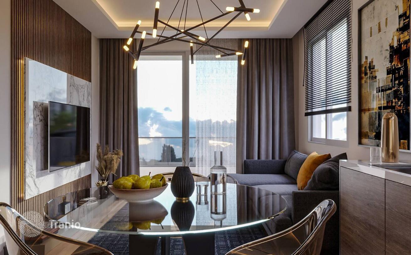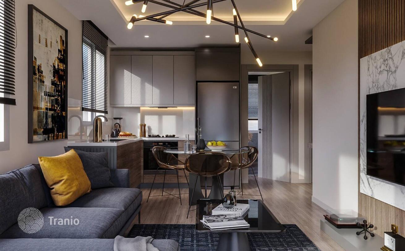 В апартаментах имеется 1 спальня, кухня открытой планировки, гостиная и ванная комната. Квартиры со стильным дизайном отделаны высококачественными материалами.