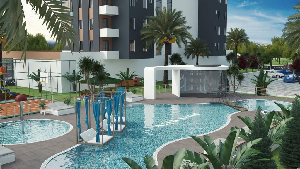 Продаётся 1+1 квартира в новом строящемся жилом комплексе в городе Мерсин, расположенном в Турции. Общая площадь квартиры составляет 64 квадратных метра. Комплекс находится в непосредственной близости от моря, всего в 500 метрах.