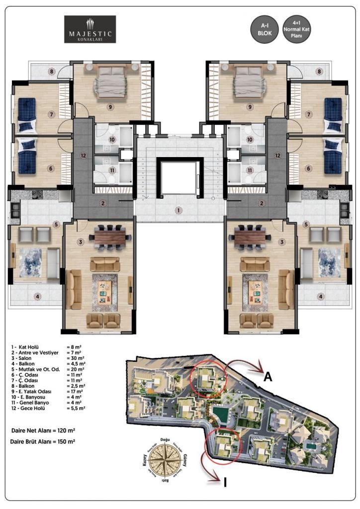 Продаётся просторная квартира в Мерсине, расположенная в большом городе. Общая площадь составляет 150 квадратных метров. Данный объект является строящимся и представляет собой 3+1 планировку с 5 комнатами, включая 3 спальни и 2 санузла. Квартира расположена на 5 этаже и находится по адресу: Турция, Мерсин, Мезитли.