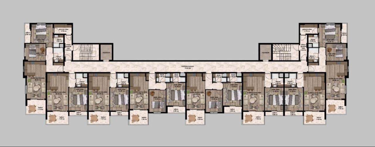 Продаётся квартира в Мерсине, расположенная у моря в пригороде. Общая площадь брутто составляет 43 квадратных метра. Это строящийся объект с планировкой 1+1, включающий в себя 2 комнаты, 1 спальню и 1 санузел. Квартира расположена на 11 этаже 11-этажного дома. Адрес объекта: Турция, Мерсин, Чешмели - Эрдемли.
