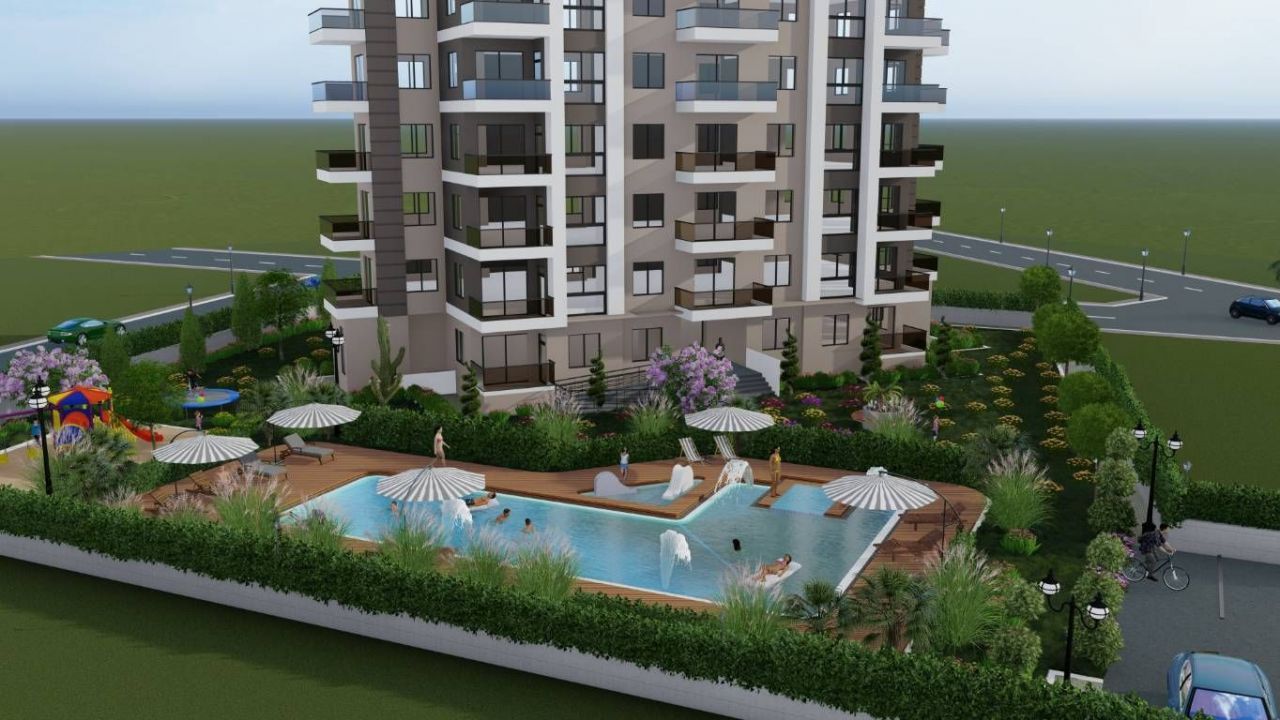 Квартира расположена на 13 этаже 13-этажного дома. Это обеспечивает прекрасный вид из окон и отличную освещенность. Адрес объекта: Турция, Мерсин.