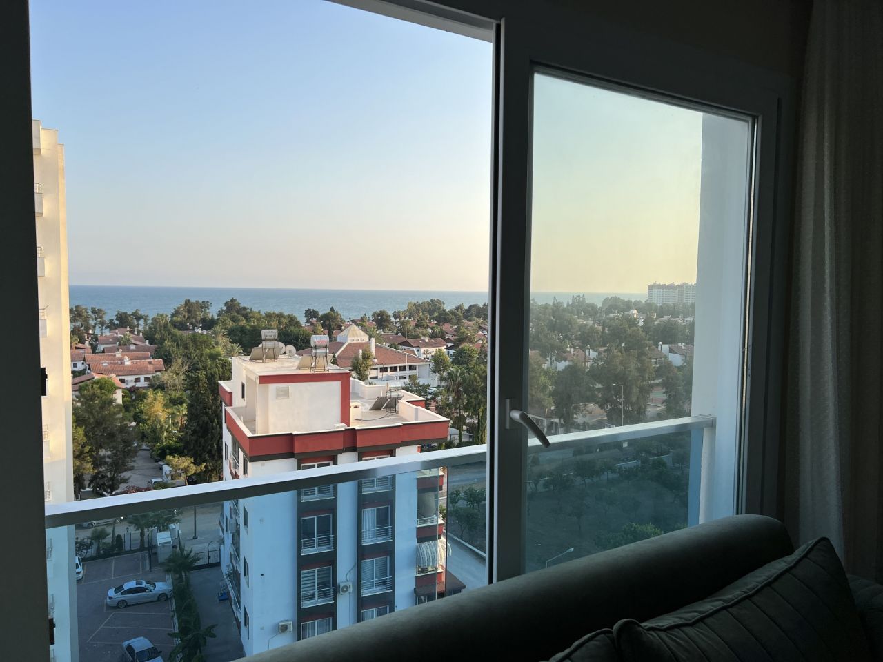 Этажность здания составляет 10 этажей, а продаваемая квартира расположена на 8 этаже. Панорамные окна позволяют наслаждаться прекрасным видом на окружающую местность и море.