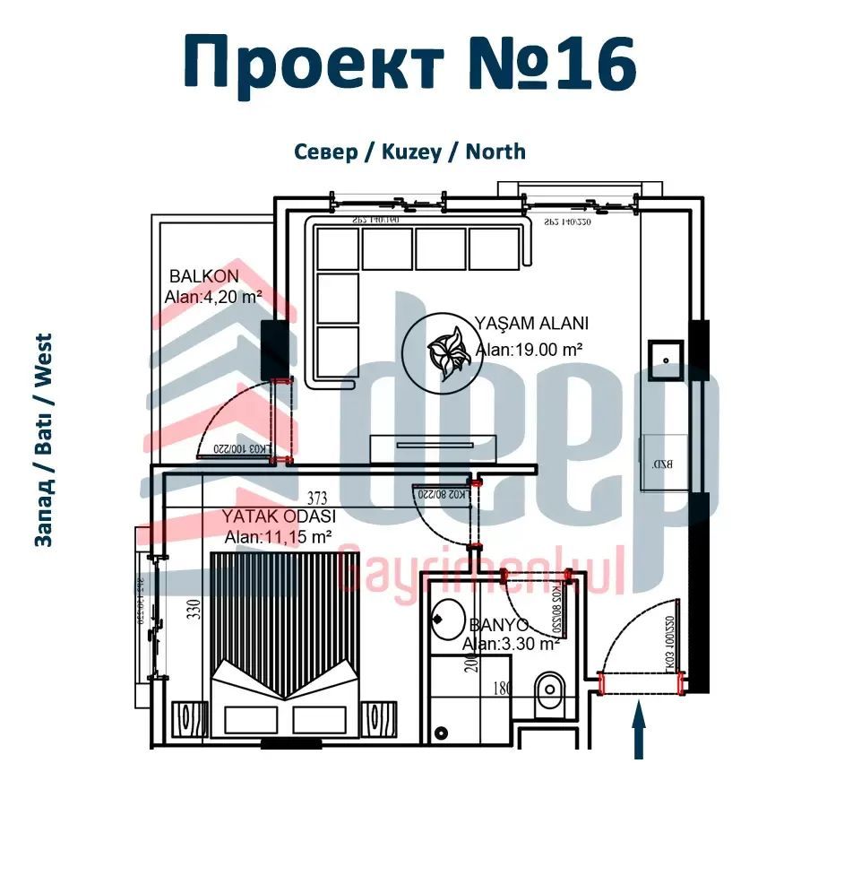 Квартира в новом строящемся жилом комплексе в Мерсине, расположена в непосредственной близости от моря. Площадь квартиры составляет 38 квадратных метров, планировка 1+1, что предоставляет комфортное пространство для проживания. В квартире имеется 1 спальня, 1 санузел и просторная гостиная.