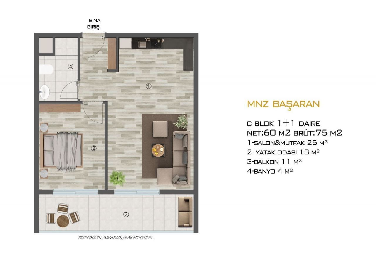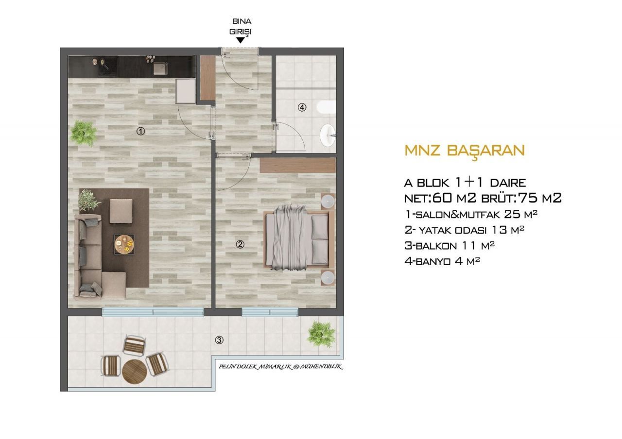 Продаётся прекрасная недвижимость в городе Мерсин, расположенная в непосредственной близости от моря. Общая площадь объекта составляет 60 квадратных метров. Этот строящийся объект имеет планировку 1+1, включающую 2 комнаты, в том числе 1 спальню, и 1 санузел. Квартира находится на первом этаже 15-этажного дома.