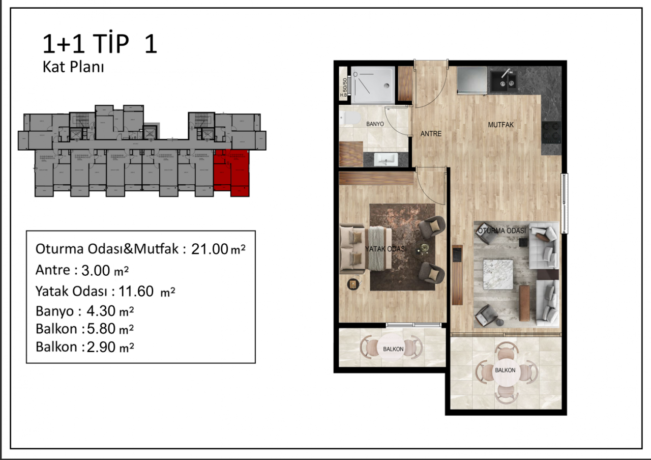 Предлагаем вашему вниманию отличную недвижимость в городе Мерсин. Это строящийся объект с площадью 48 кв.м. и планировкой 1+1, что делает его идеальным вариантом для молодой семьи или инвестора.