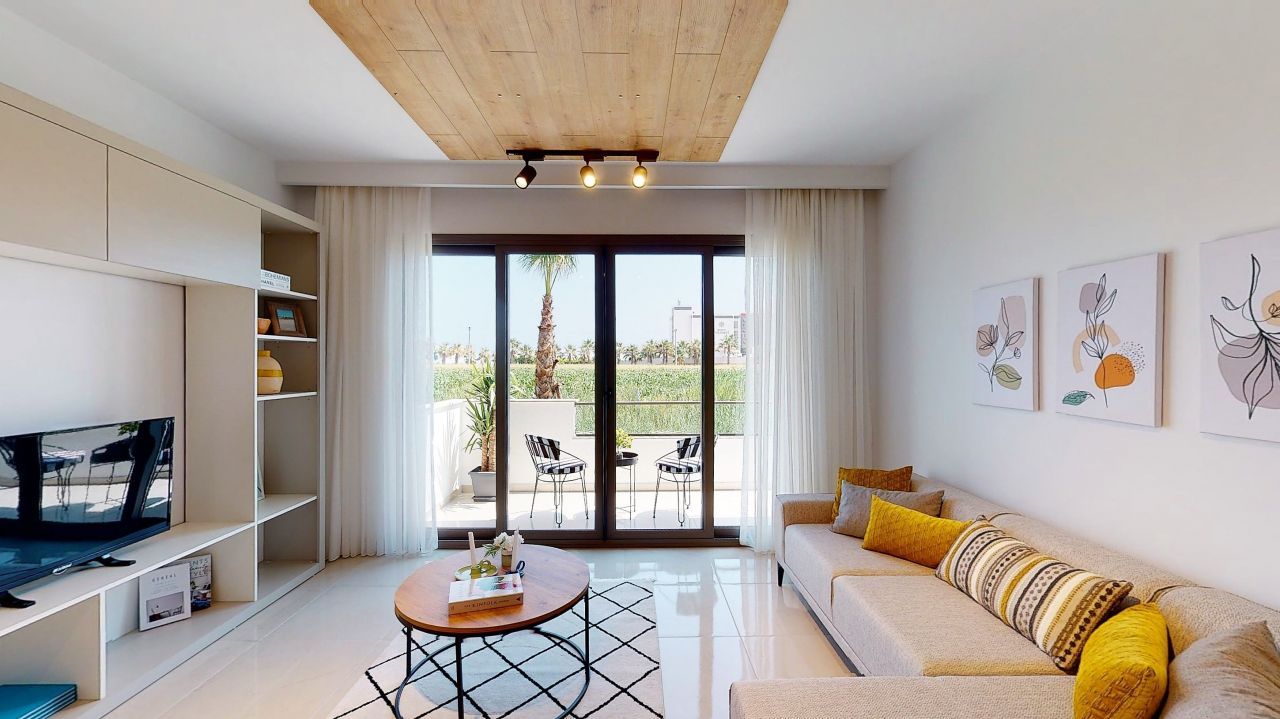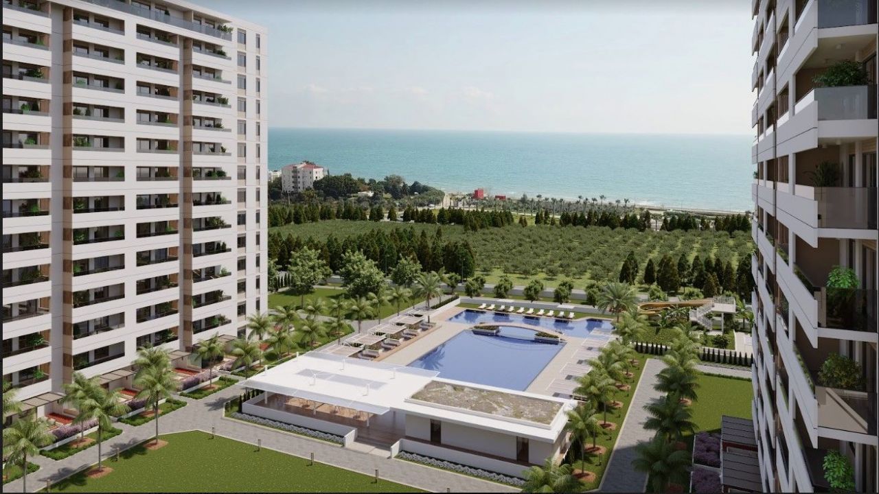 Продаётся уютная квартира в Мерсине, расположенная всего в 150 метрах от моря. Общая площадь этого прекрасного объекта недвижимости составляет 53 квадратных метра. Это строящийся жилой комплекс, находящийся на первом этаже 14-этажного здания.