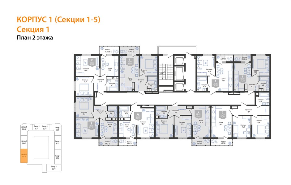 Квартира: 1 к 39,20 кв.м., 2 этаж в комплексе Облака-3, 3 очередь, корп.1 (Секции 1-5), сдача: 4кв. , этажей: 24, адрес Новороссийск г., Куникова ул., д. 47, Застройщик: Неометрия.