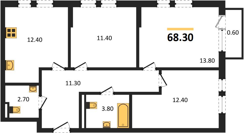 Квартира: 3 к 68,30 кв.м., 13 этаж в комплексе Барса, 1 очередь, корп.4В, сдача: 1кв. , этажей: 15, адрес Новороссийск г., Мурата Ахеджака ул., , Застройщик: ТОЧНО.