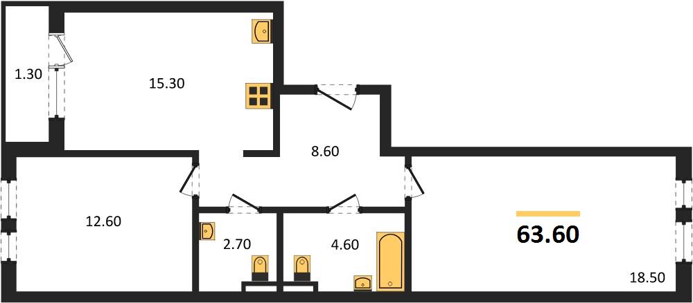 Квартира: 2 к 63,60 кв.м., 8 этаж в комплексе Барса, 1 очередь, корп.4В, сдача: 1кв. , этажей: 15, адрес Новороссийск г., Мурата Ахеджака ул., , Застройщик: ТОЧНО.