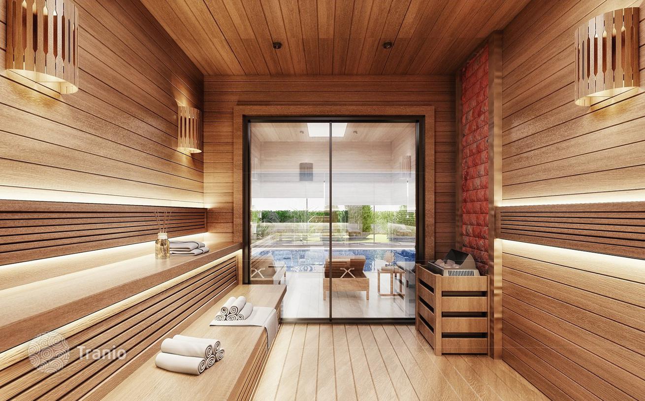 Резиденция располагает большим открытым бассейном с аквапарком, крытым бассейном, сауной, хамамом и парной, массажным кабинетом, соляной пещерой, тренажерным залом, джакузи, витаминным баром, игровыми комнатами, теннисным кортом, баскетбольной площадкой, полем для мини-гольфа, садом, детской площадкой, зоной барбекю, парковкой.