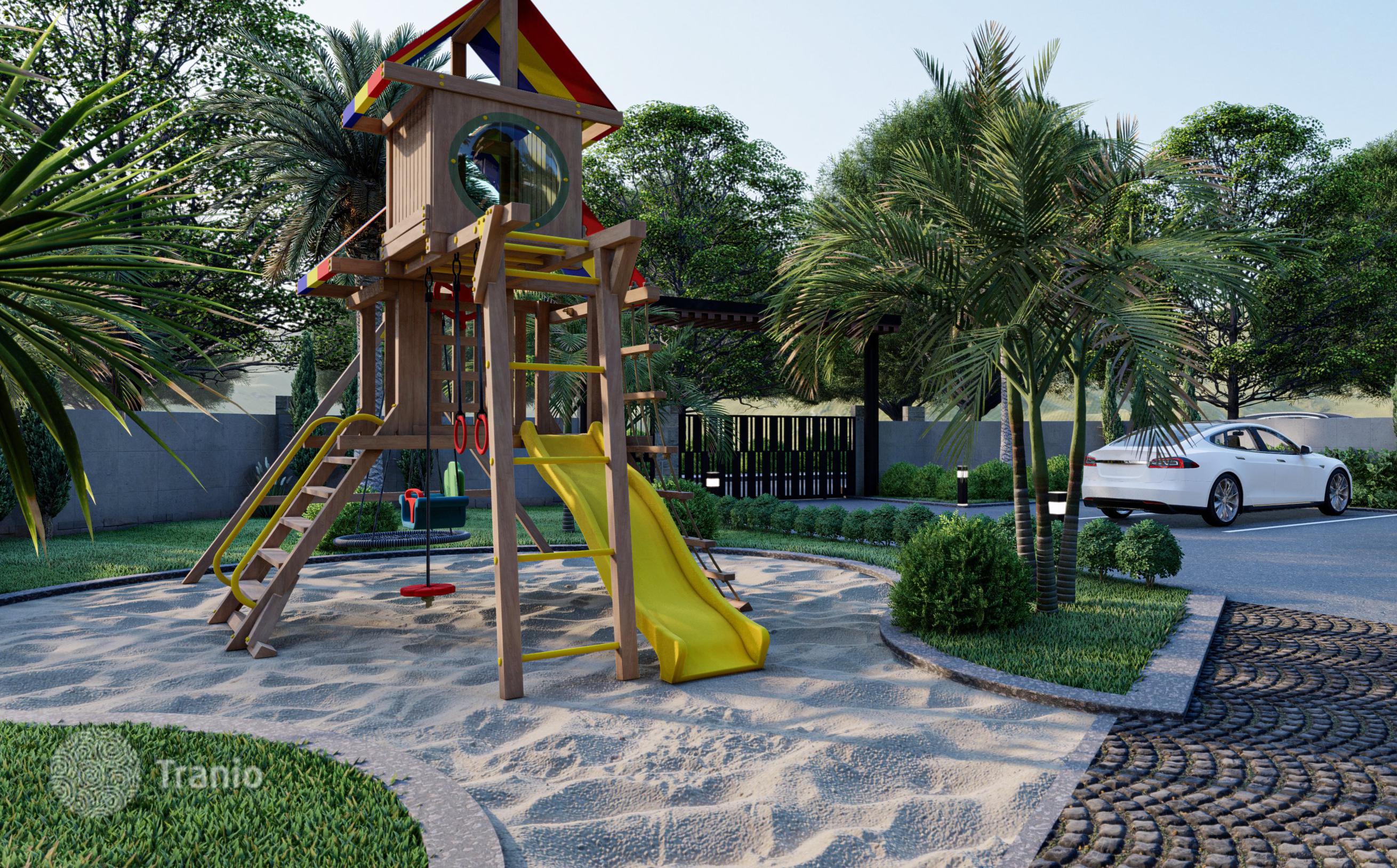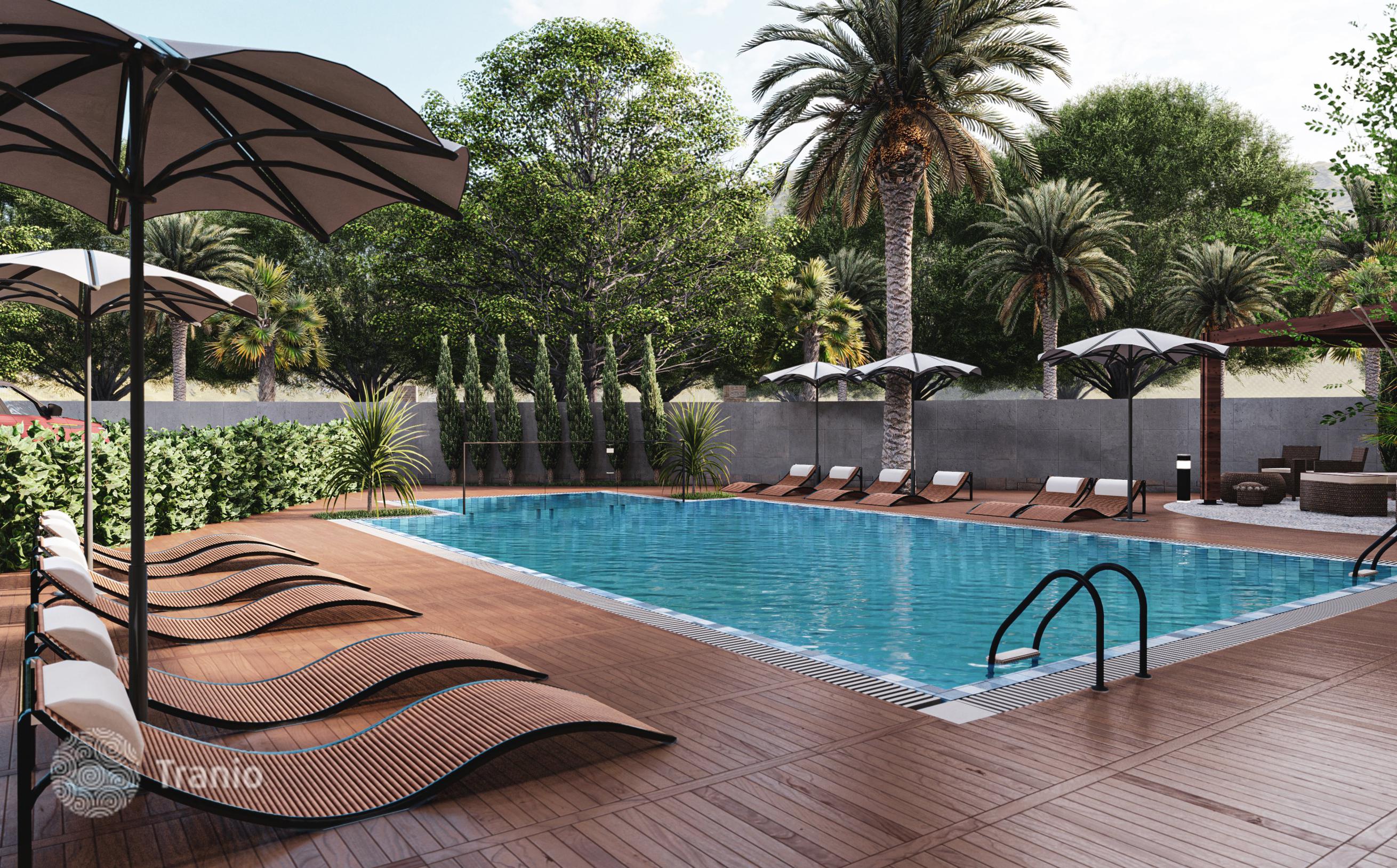 Элитная резиденция располагает бассейнами для детей и взрослых, зоной барбекю, фитнес-центром, генератором, детской площадкой, парковкой, консьержем, круглосуточной охраной и видеонаблюдением.