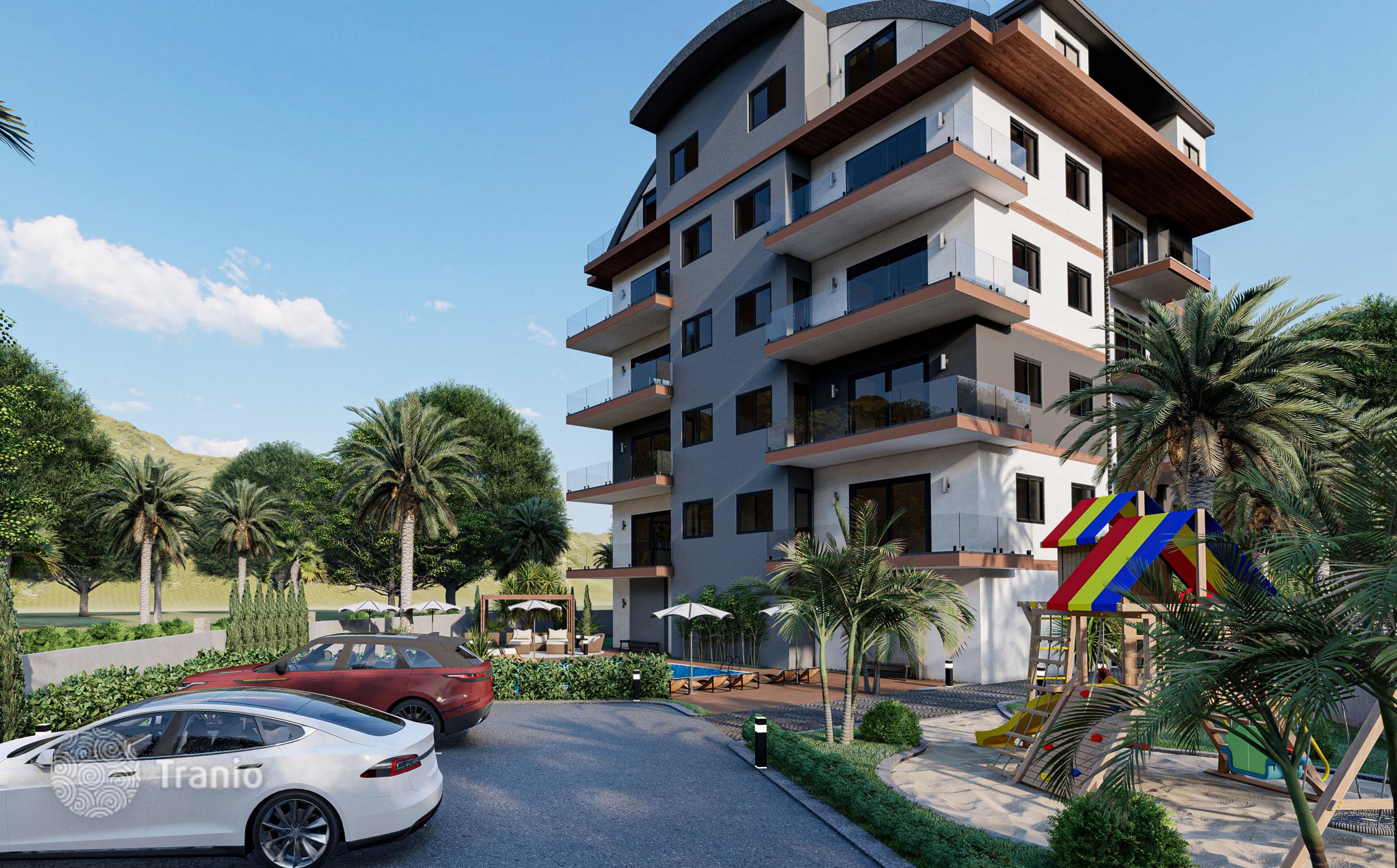 Недвижимость находится в спокойном районе, в 250 метрах от супермаркета и школ, в 500 метрах от больницы, в 1,5 км от центра города Оба, в двух километрах от пляжа.