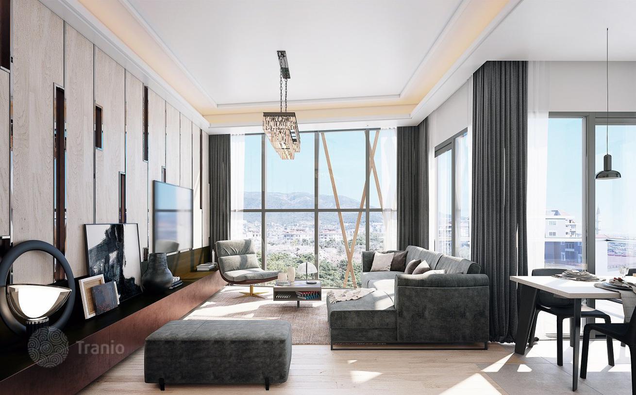 Недвижимость находится в одном километре от пляжа, в 45 км от международного аэропорта Аланья, в пяти километрах от центра города Аланья, недалеко от торговых центров, больницы, школ, ресторанов и кафе.