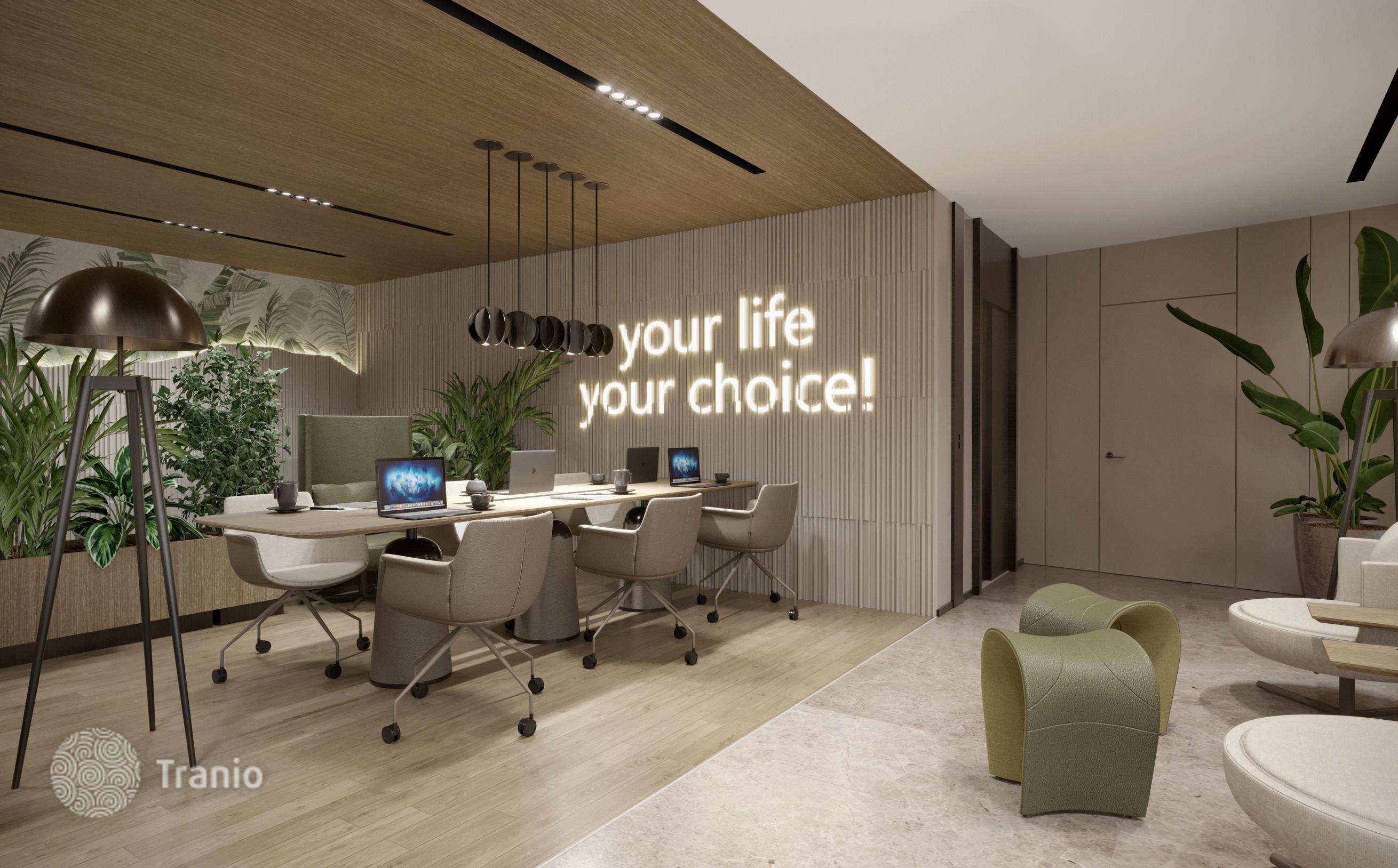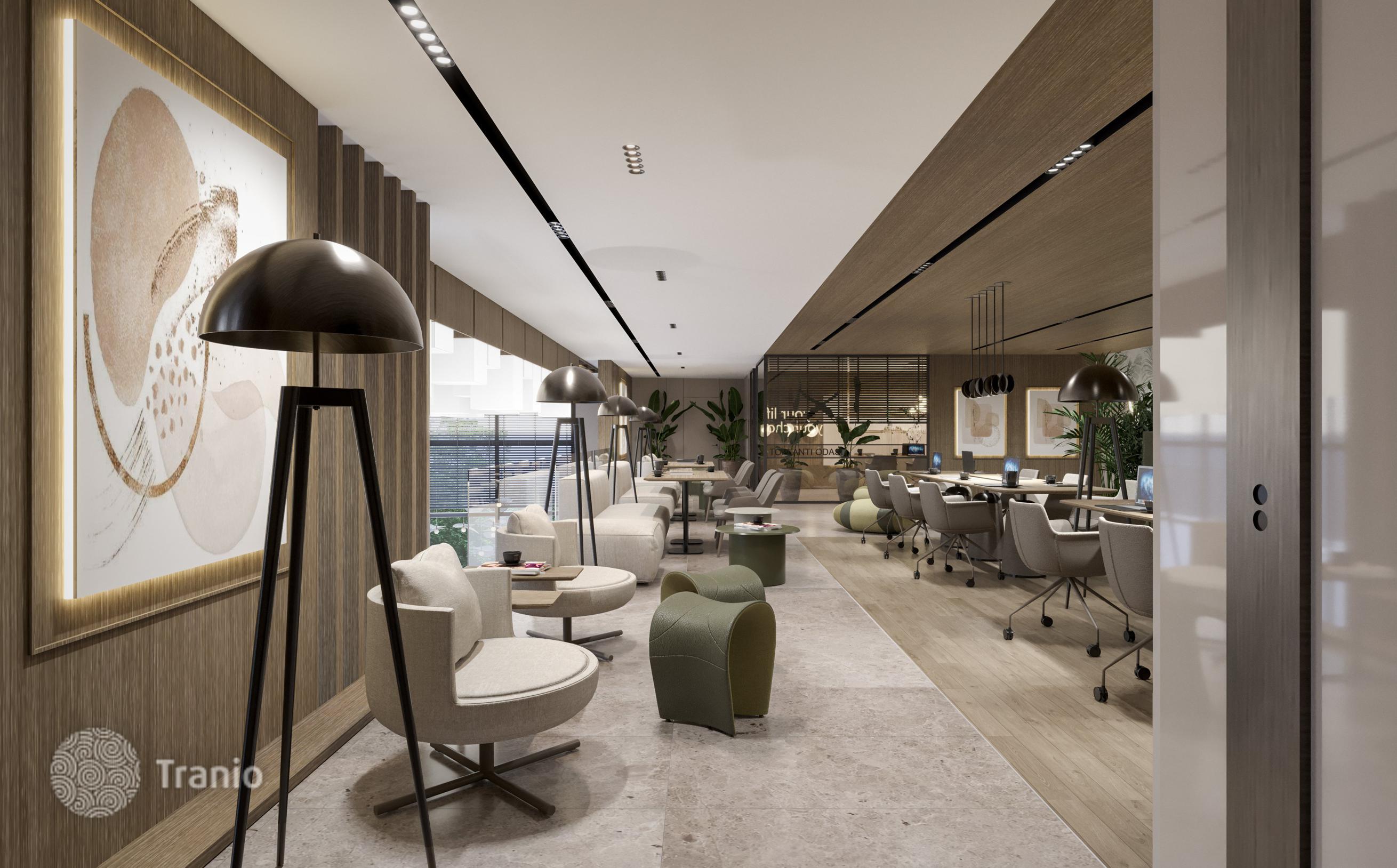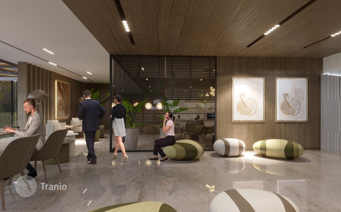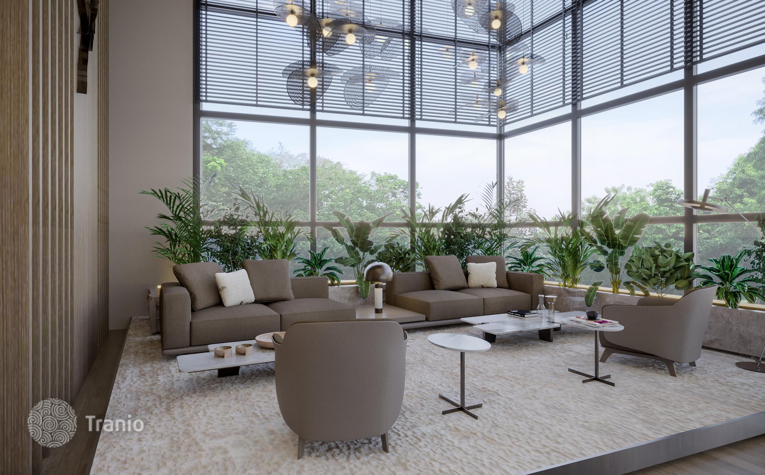 Комплекс будет построен на 15 500 м² открытой территории. 235 м² зона лоби.